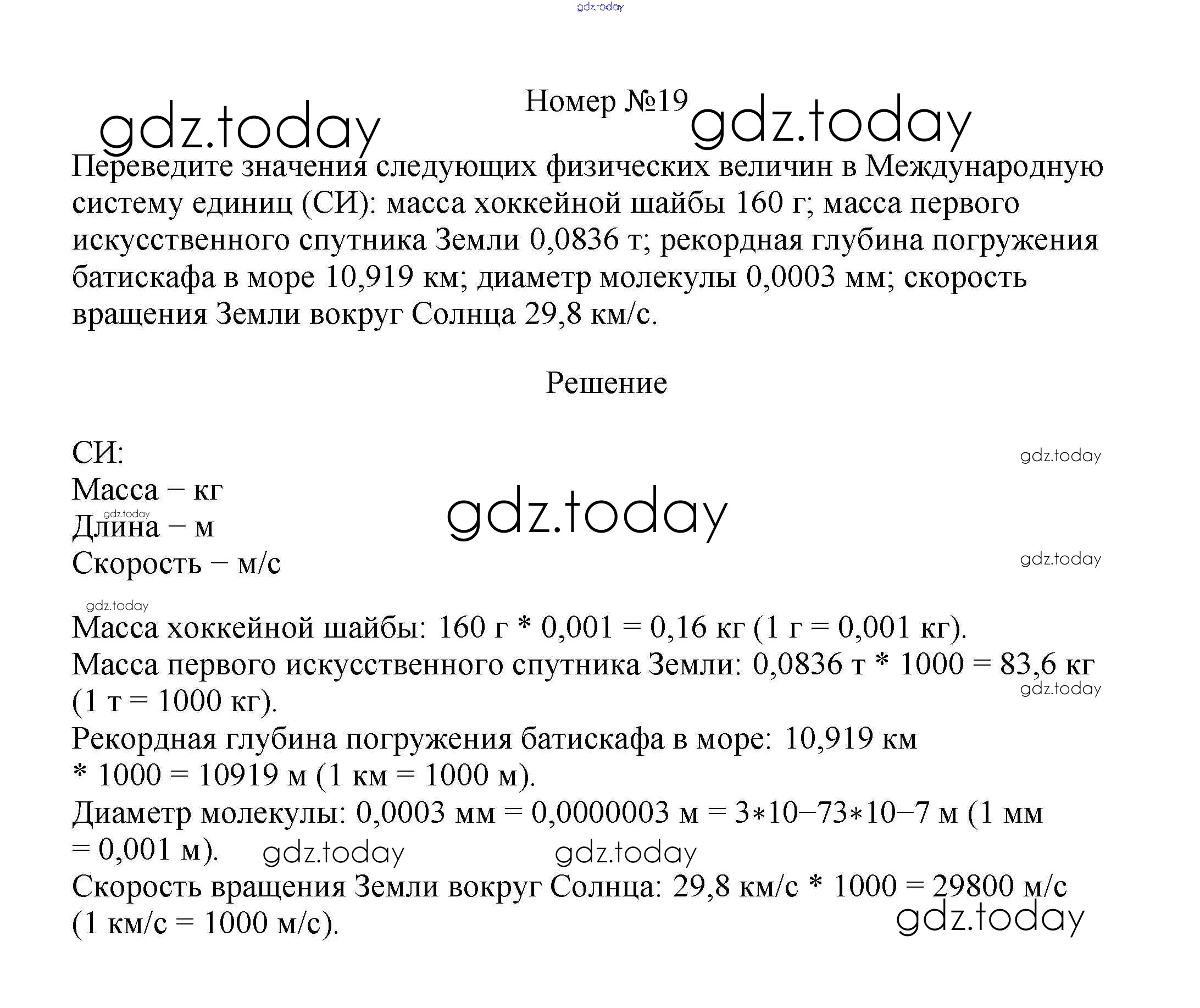 На страницах сайта gdz.today вы найдете учебный и вспомогательный материал, направленный на улучшения знаний школьной программы. ГДЗ - онлайн мир знаний Решение к заданиям 7 класс 19 Сборнику вопросов и задач по Физике для 7-9 класса Марон, Позойский Дрофа Вертикаль 2013