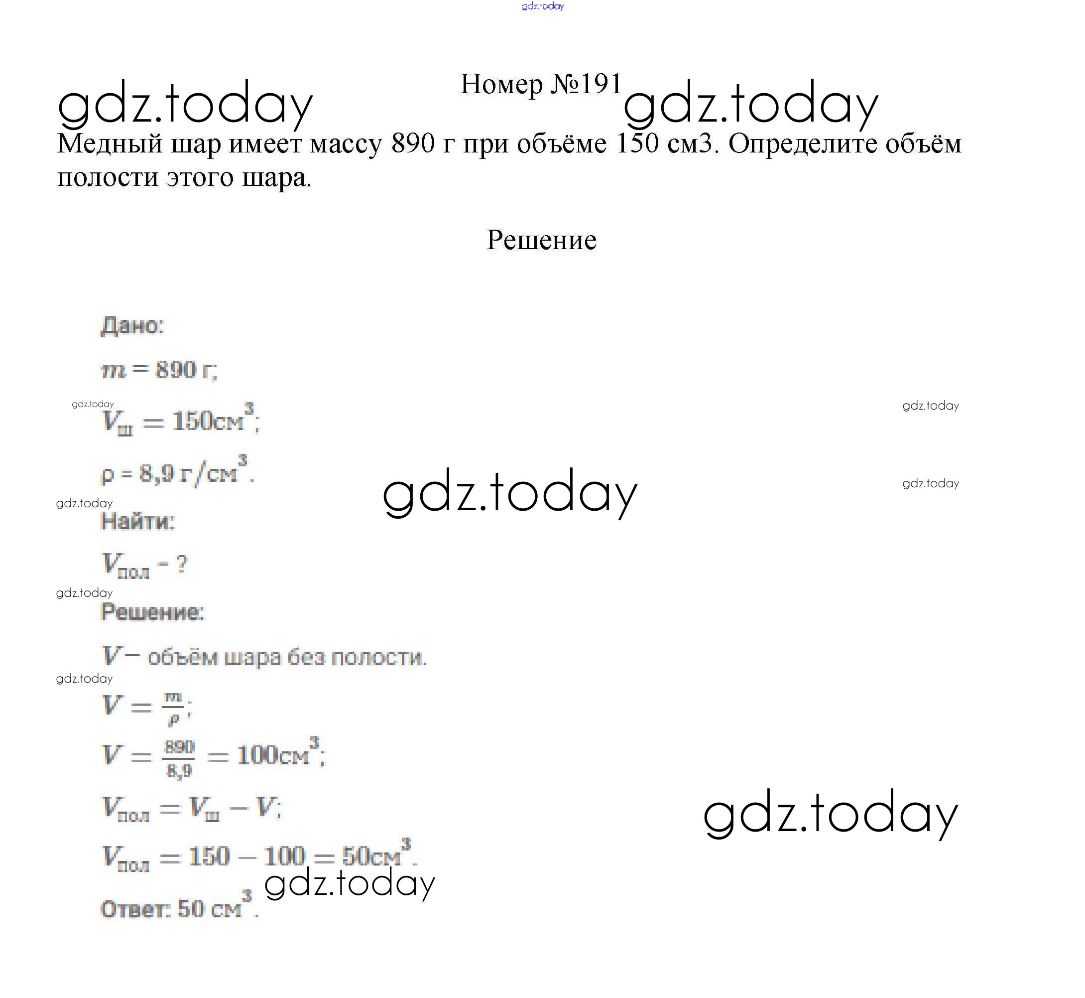 На страницах сайта gdz.today вы найдете учебный и вспомогательный материал, направленный на улучшения знаний школьной программы. ГДЗ - онлайн мир знаний Решение к заданиям 7 класс 191 Сборнику вопросов и задач по Физике для 7-9 класса Марон, Позойский Дрофа Вертикаль 2013