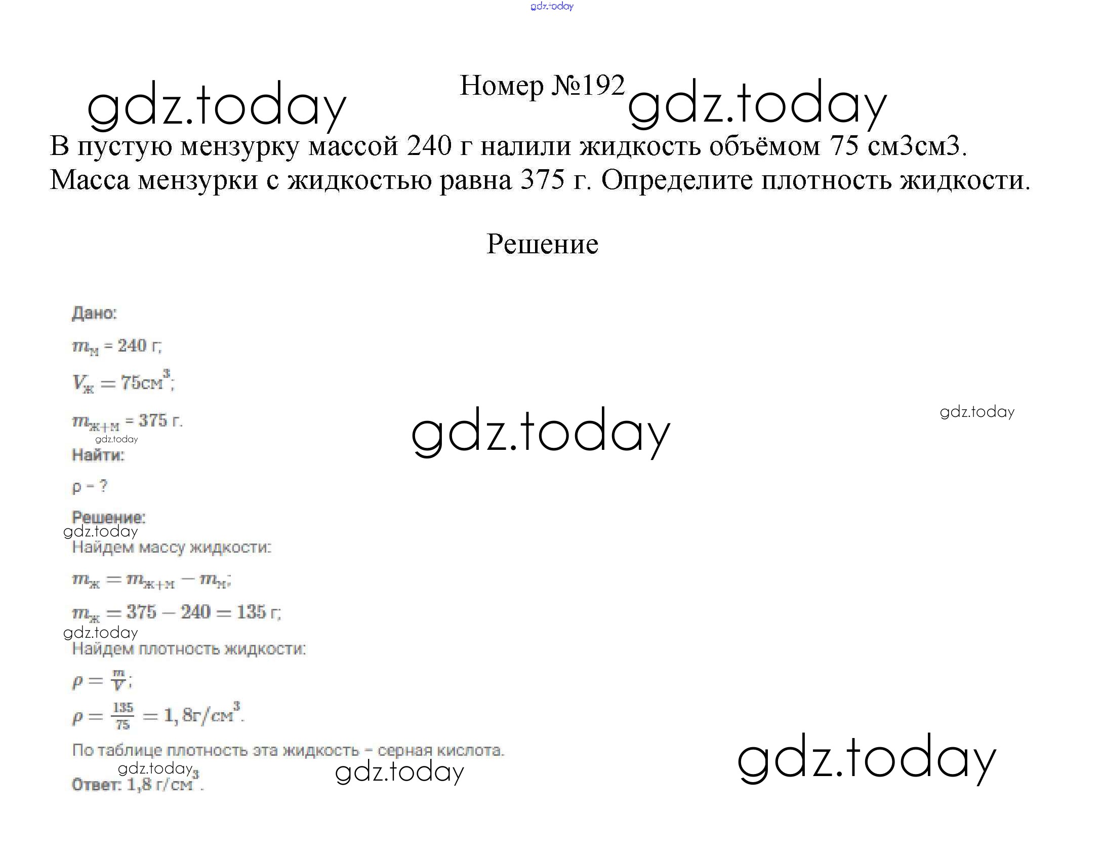На страницах сайта gdz.today вы найдете учебный и вспомогательный материал, направленный на улучшения знаний школьной программы. ГДЗ - онлайн мир знаний Решение к заданиям 7 класс 192 Сборнику вопросов и задач по Физике для 7-9 класса Марон, Позойский Дрофа Вертикаль 2013