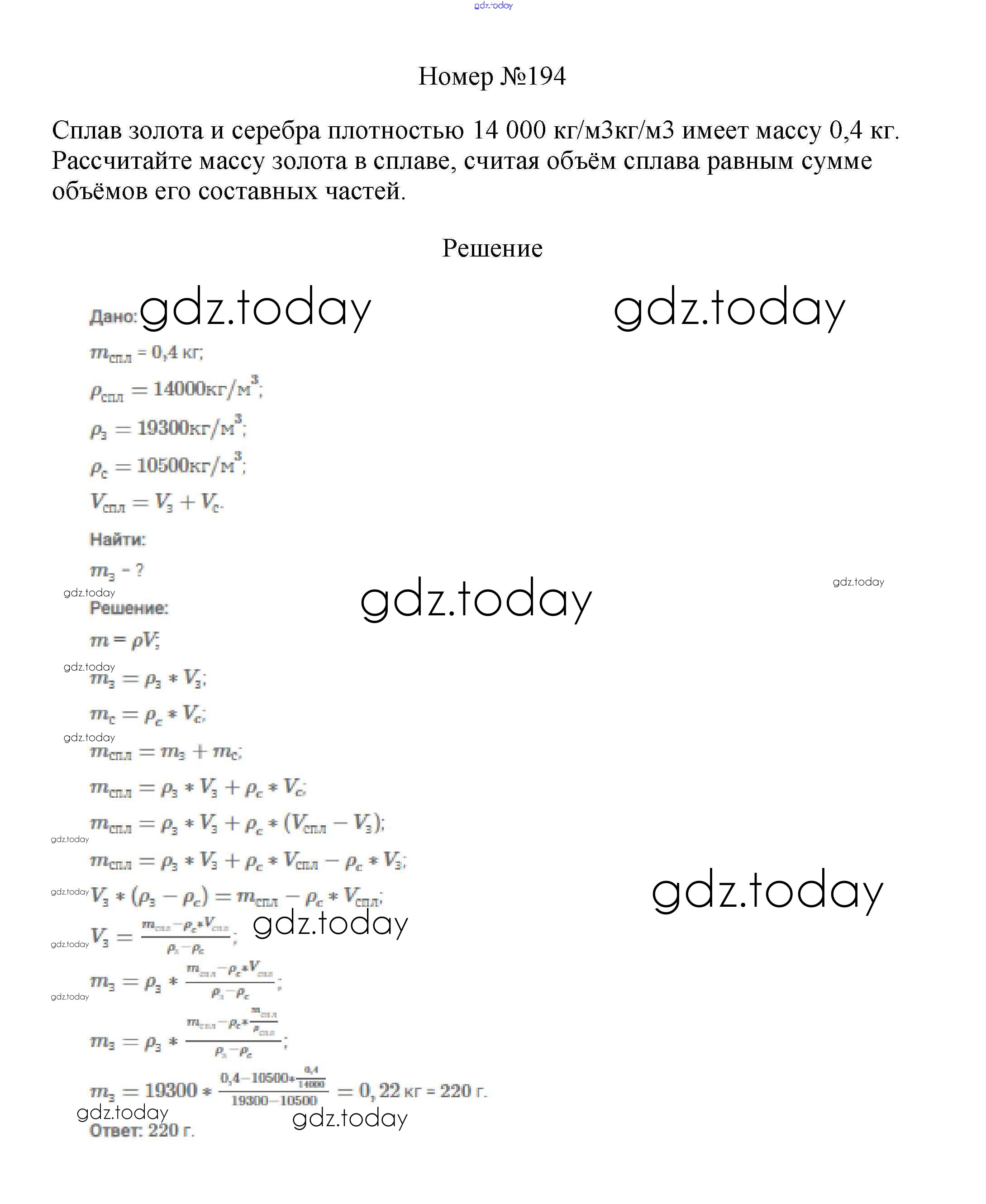 На страницах сайта gdz.today вы найдете учебный и вспомогательный материал, направленный на улучшения знаний школьной программы. ГДЗ - онлайн мир знаний Решение к заданиям 7 класс 194 Сборнику вопросов и задач по Физике для 7-9 класса Марон, Позойский Дрофа Вертикаль 2013
