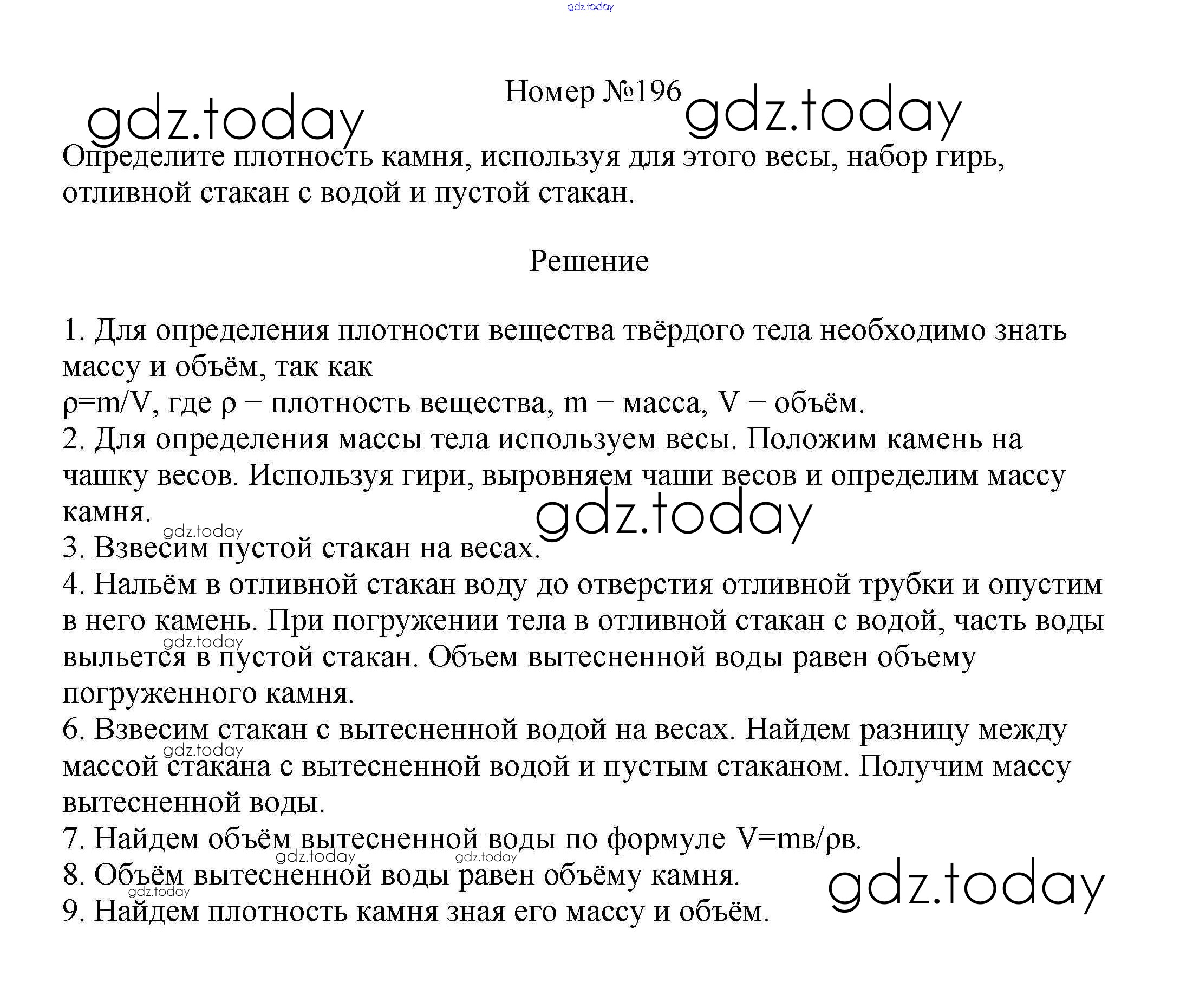 На страницах сайта gdz.today вы найдете учебный и вспомогательный материал, направленный на улучшения знаний школьной программы. ГДЗ - онлайн мир знаний Решение к заданиям 7 класс 196 Сборнику вопросов и задач по Физике для 7-9 класса Марон, Позойский Дрофа Вертикаль 2013