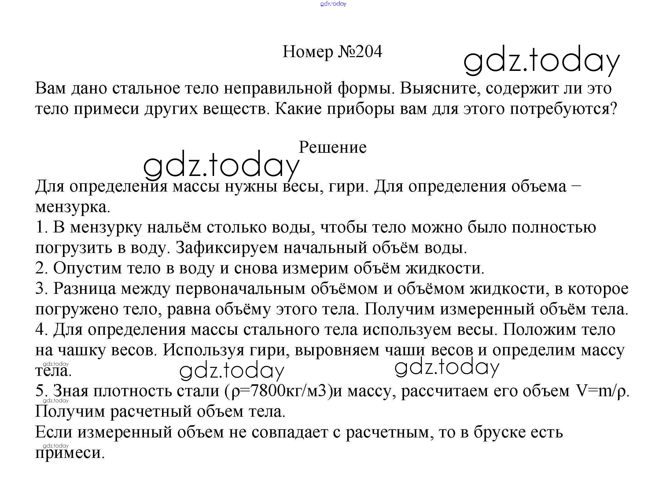 На страницах сайта gdz.today вы найдете учебный и вспомогательный материал, направленный на улучшения знаний школьной программы. ГДЗ - онлайн мир знаний Решение к заданиям 7 класс 204 Сборнику вопросов и задач по Физике для 7-9 класса Марон, Позойский Дрофа Вертикаль 2013