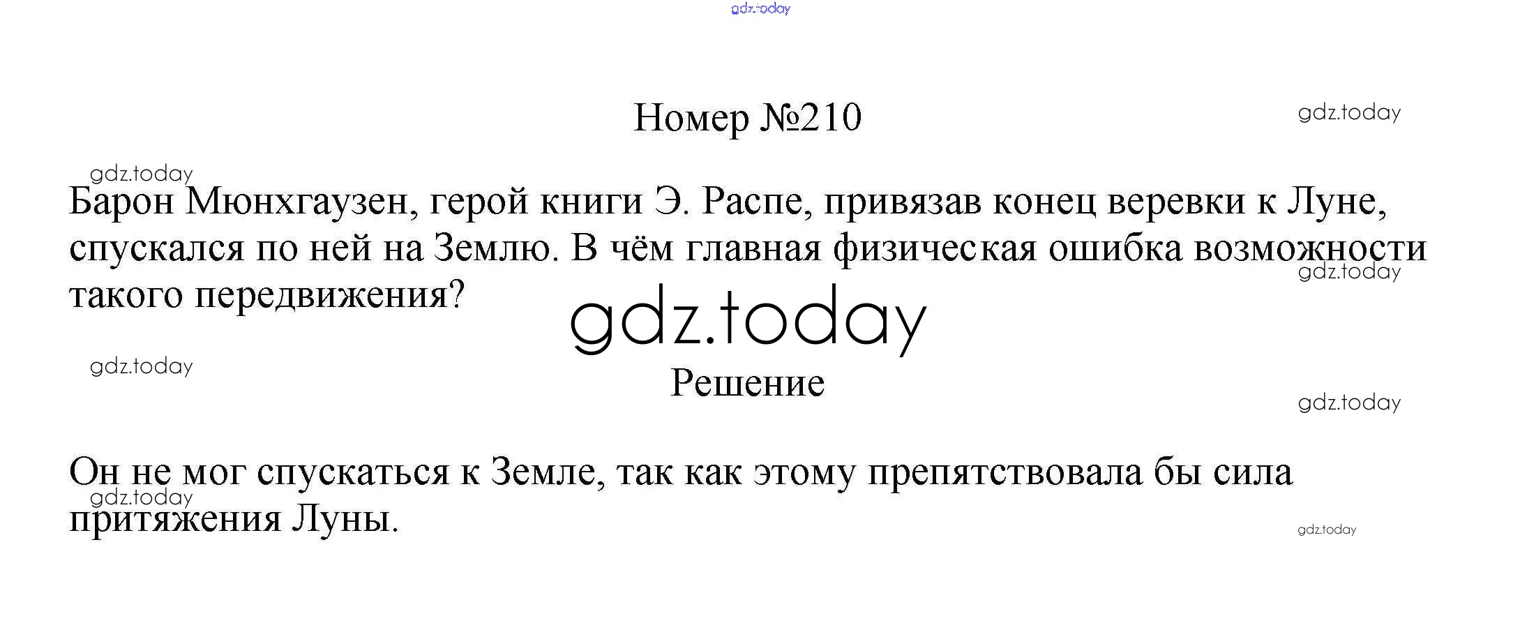 На страницах сайта gdz.today вы найдете учебный и вспомогательный материал, направленный на улучшения знаний школьной программы. ГДЗ - онлайн мир знаний Решение к заданиям 7 класс 210 Сборнику вопросов и задач по Физике для 7-9 класса Марон, Позойский Дрофа Вертикаль 2013