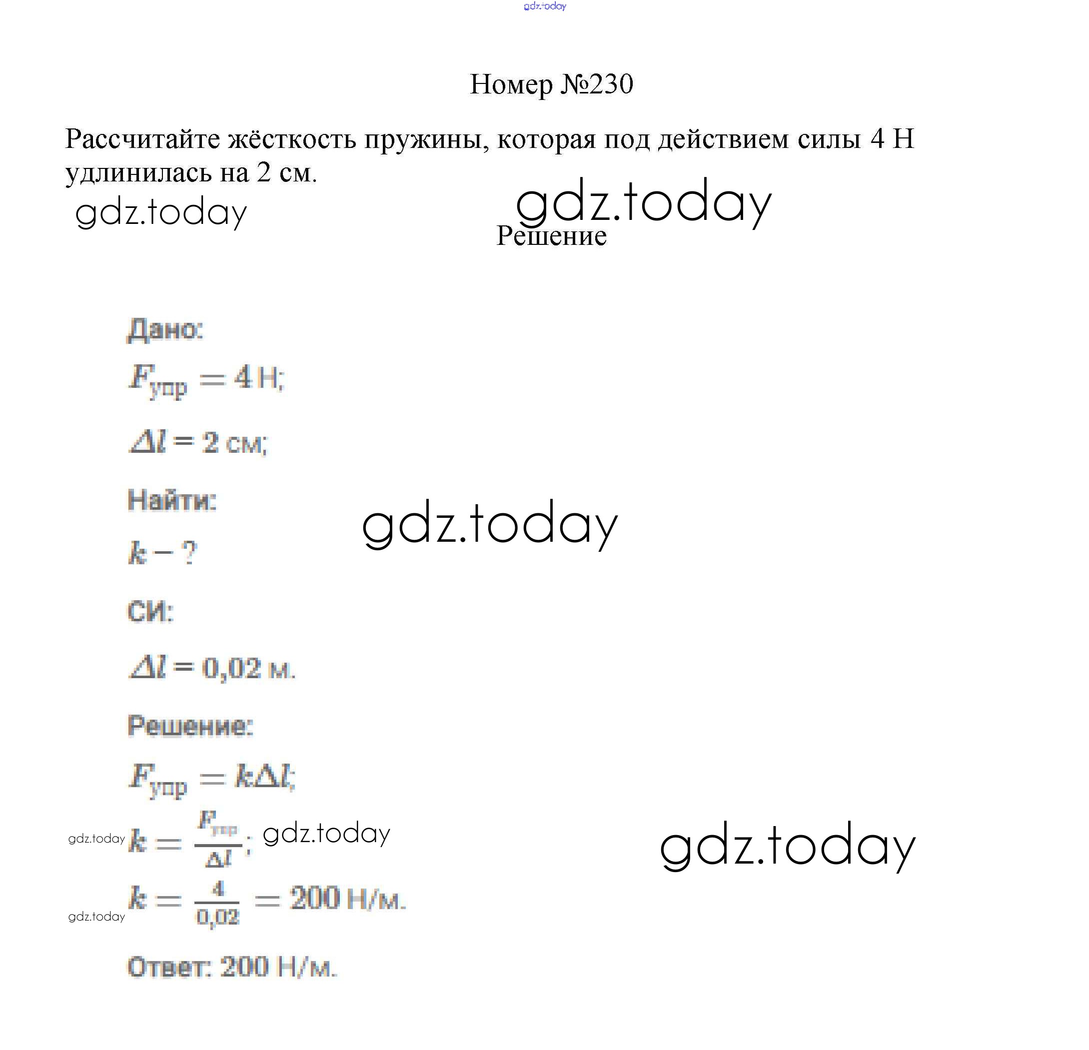 На страницах сайта gdz.today вы найдете учебный и вспомогательный материал, направленный на улучшения знаний школьной программы. ГДЗ - онлайн мир знаний Решение к заданиям 7 класс 230 Сборнику вопросов и задач по Физике для 7-9 класса Марон, Позойский Дрофа Вертикаль 2013