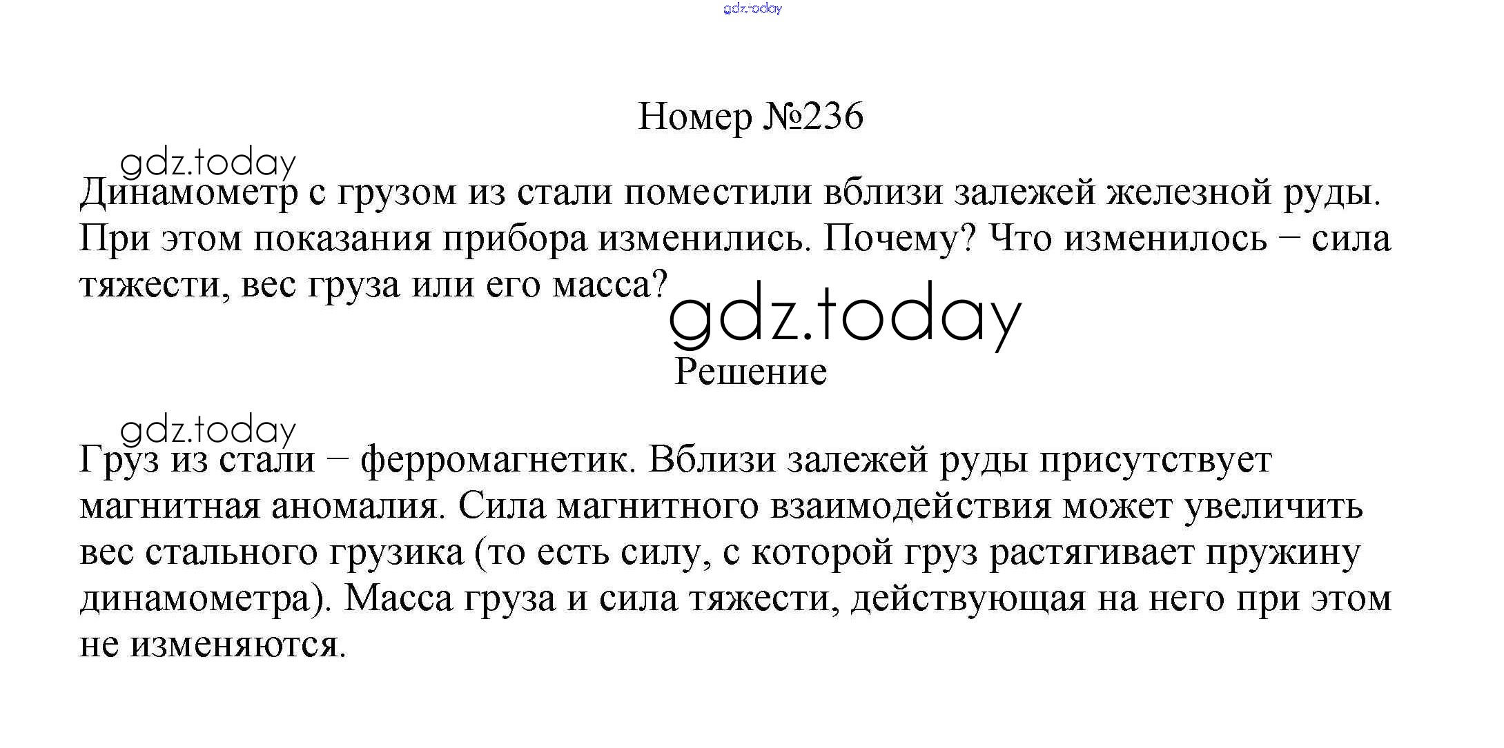 На страницах сайта gdz.today вы найдете учебный и вспомогательный материал, направленный на улучшения знаний школьной программы. ГДЗ - онлайн мир знаний Решение к заданиям 7 класс 236 Сборнику вопросов и задач по Физике для 7-9 класса Марон, Позойский Дрофа Вертикаль 2013