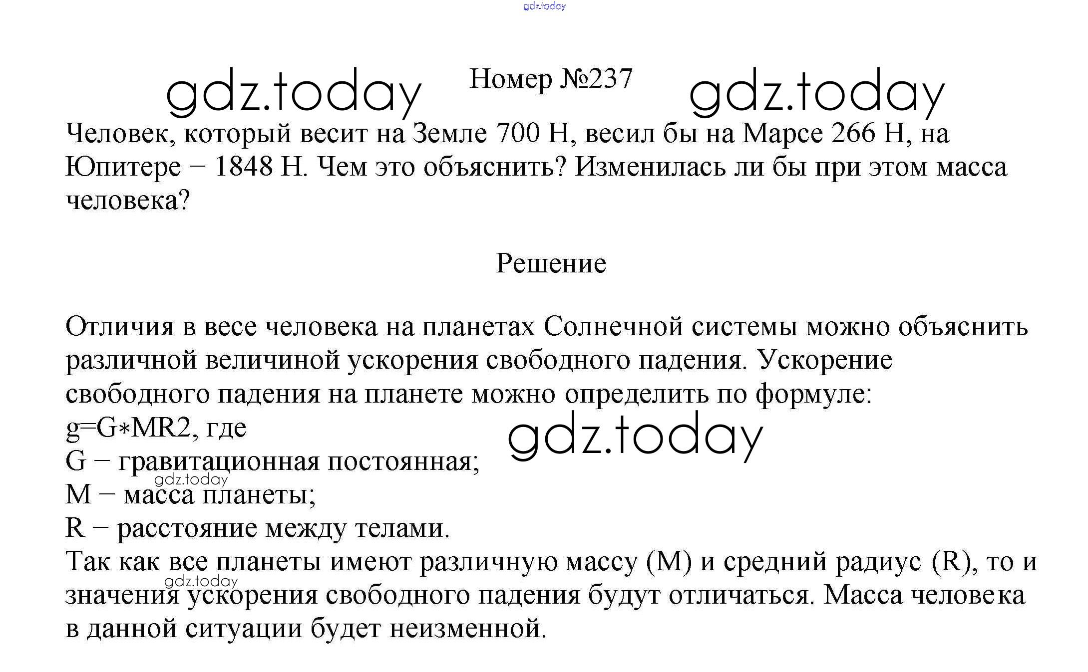 На страницах сайта gdz.today вы найдете учебный и вспомогательный материал, направленный на улучшения знаний школьной программы. ГДЗ - онлайн мир знаний Решение к заданиям 7 класс 237 Сборнику вопросов и задач по Физике для 7-9 класса Марон, Позойский Дрофа Вертикаль 2013