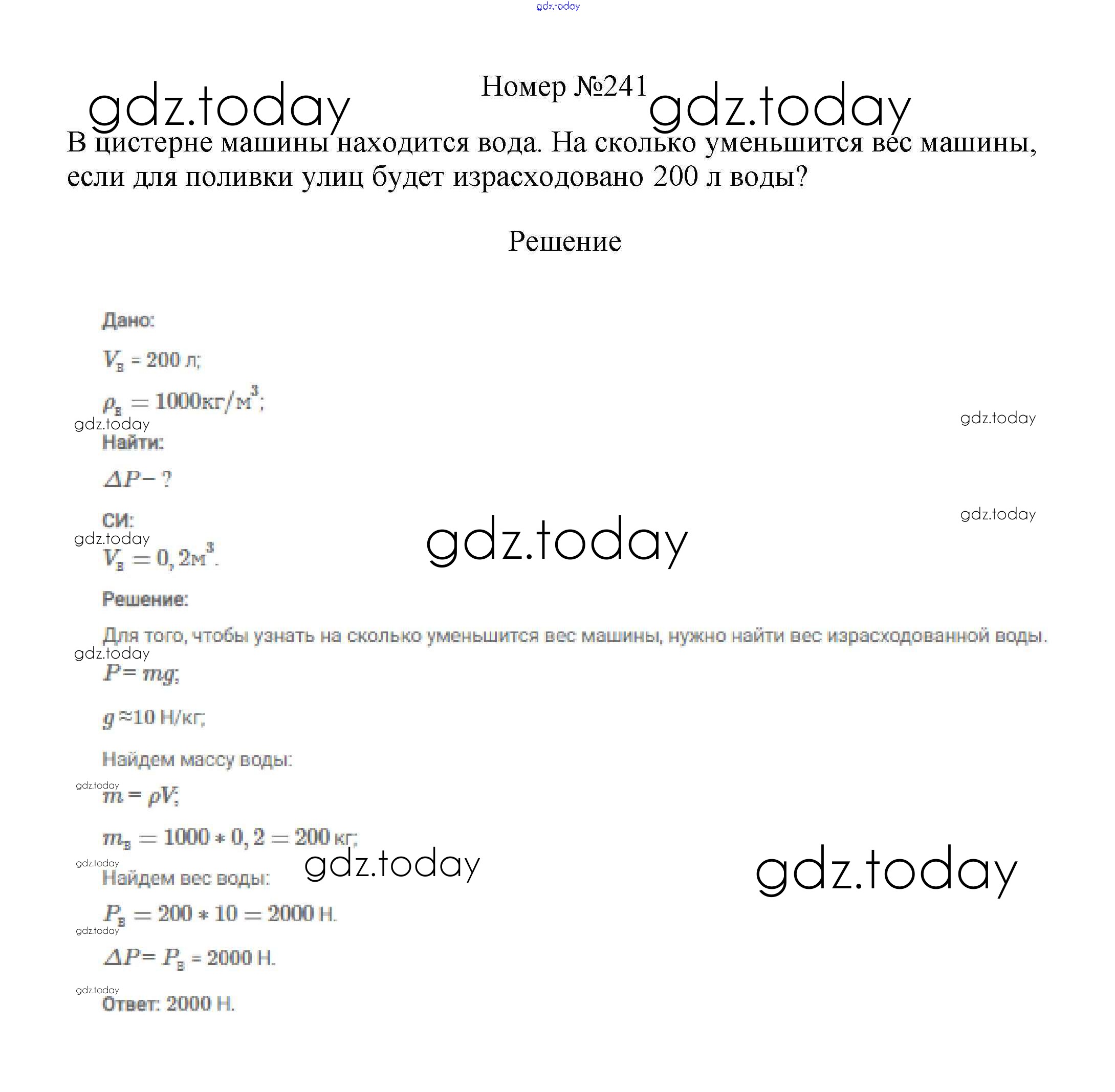 На страницах сайта gdz.today вы найдете учебный и вспомогательный материал, направленный на улучшения знаний школьной программы. ГДЗ - онлайн мир знаний Решение к заданиям 7 класс 241 Сборнику вопросов и задач по Физике для 7-9 класса Марон, Позойский Дрофа Вертикаль 2013