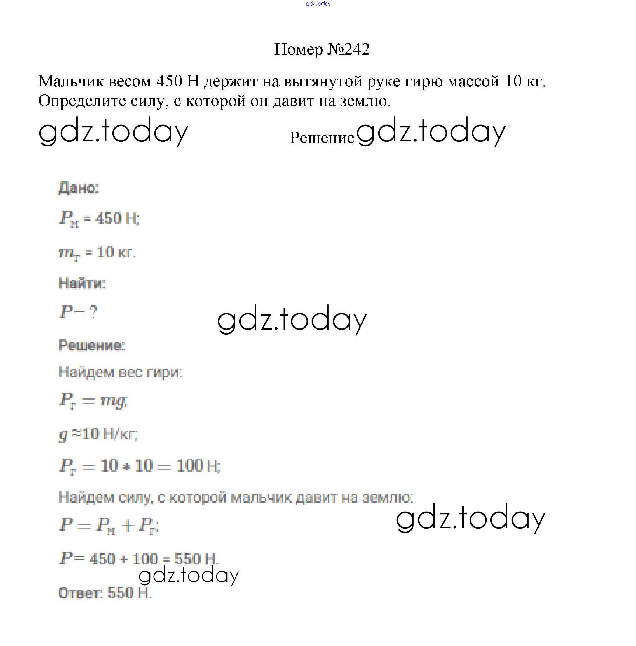 На страницах сайта gdz.today вы найдете учебный и вспомогательный материал, направленный на улучшения знаний школьной программы. ГДЗ - онлайн мир знаний Решение к заданиям 7 класс 242 Сборнику вопросов и задач по Физике для 7-9 класса Марон, Позойский Дрофа Вертикаль 2013