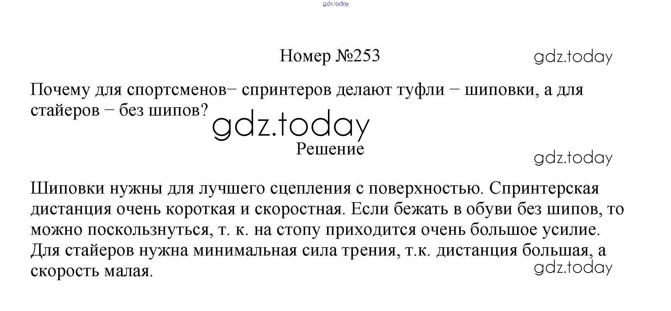 На страницах сайта gdz.today вы найдете учебный и вспомогательный материал, направленный на улучшения знаний школьной программы. ГДЗ - онлайн мир знаний Решение к заданиям 7 класс 253 Сборнику вопросов и задач по Физике для 7-9 класса Марон, Позойский Дрофа Вертикаль 2013