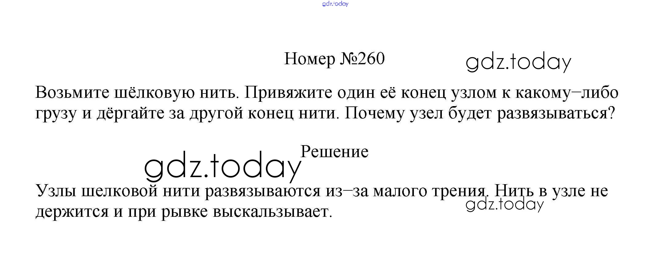 На страницах сайта gdz.today вы найдете учебный и вспомогательный материал, направленный на улучшения знаний школьной программы. ГДЗ - онлайн мир знаний Решение к заданиям 7 класс 260 Сборнику вопросов и задач по Физике для 7-9 класса Марон, Позойский Дрофа Вертикаль 2013