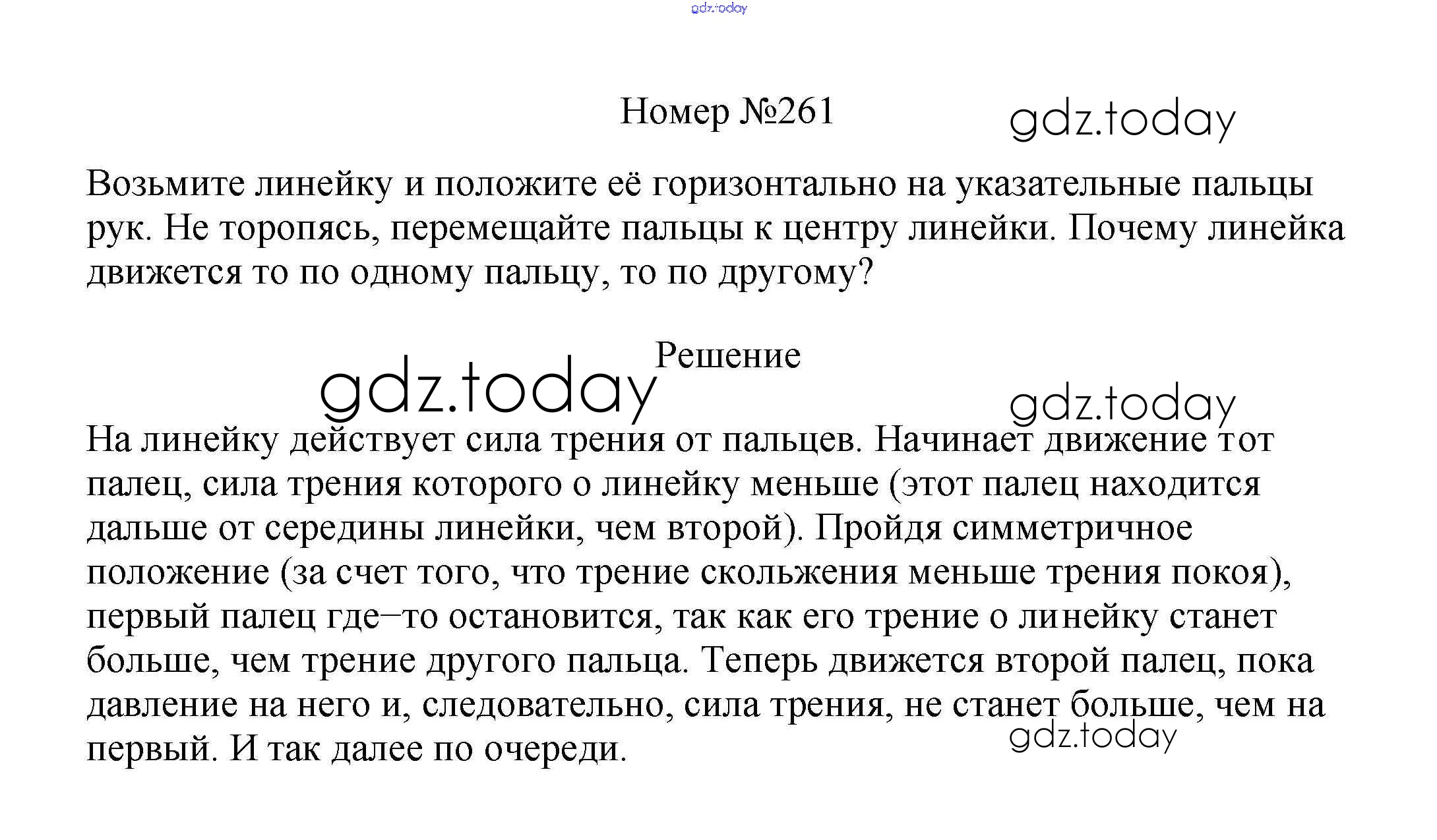 На страницах сайта gdz.today вы найдете учебный и вспомогательный материал, направленный на улучшения знаний школьной программы. ГДЗ - онлайн мир знаний Решение к заданиям 7 класс 261 Сборнику вопросов и задач по Физике для 7-9 класса Марон, Позойский Дрофа Вертикаль 2013