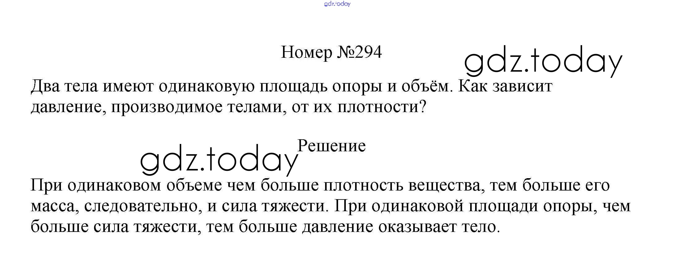 На страницах сайта gdz.today вы найдете учебный и вспомогательный материал, направленный на улучшения знаний школьной программы. ГДЗ - онлайн мир знаний Решение к заданиям 7 класс 294 Сборнику вопросов и задач по Физике для 7-9 класса Марон, Позойский Дрофа Вертикаль 2013
