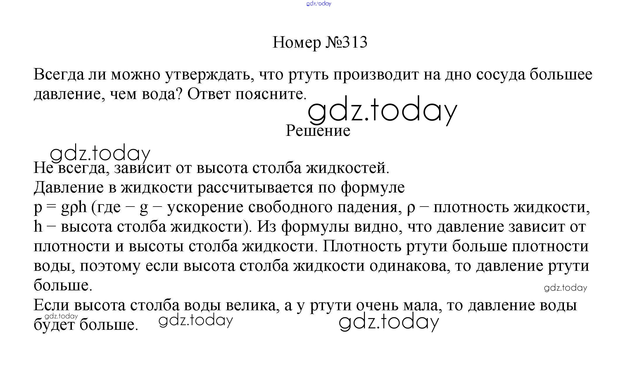 На страницах сайта gdz.today вы найдете учебный и вспомогательный материал, направленный на улучшения знаний школьной программы. ГДЗ - онлайн мир знаний Решение к заданиям 7 класс 313 Сборнику вопросов и задач по Физике для 7-9 класса Марон, Позойский Дрофа Вертикаль 2013