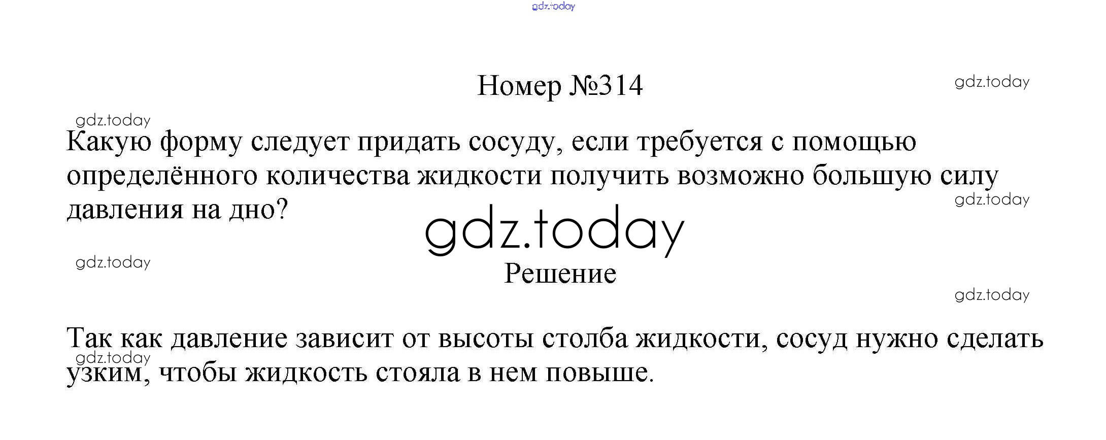 На страницах сайта gdz.today вы найдете учебный и вспомогательный материал, направленный на улучшения знаний школьной программы. ГДЗ - онлайн мир знаний Решение к заданиям 7 класс 314 Сборнику вопросов и задач по Физике для 7-9 класса Марон, Позойский Дрофа Вертикаль 2013