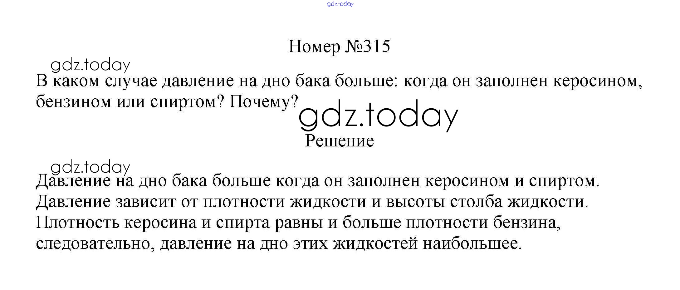 На страницах сайта gdz.today вы найдете учебный и вспомогательный материал, направленный на улучшения знаний школьной программы. ГДЗ - онлайн мир знаний Решение к заданиям 7 класс 315 Сборнику вопросов и задач по Физике для 7-9 класса Марон, Позойский Дрофа Вертикаль 2013