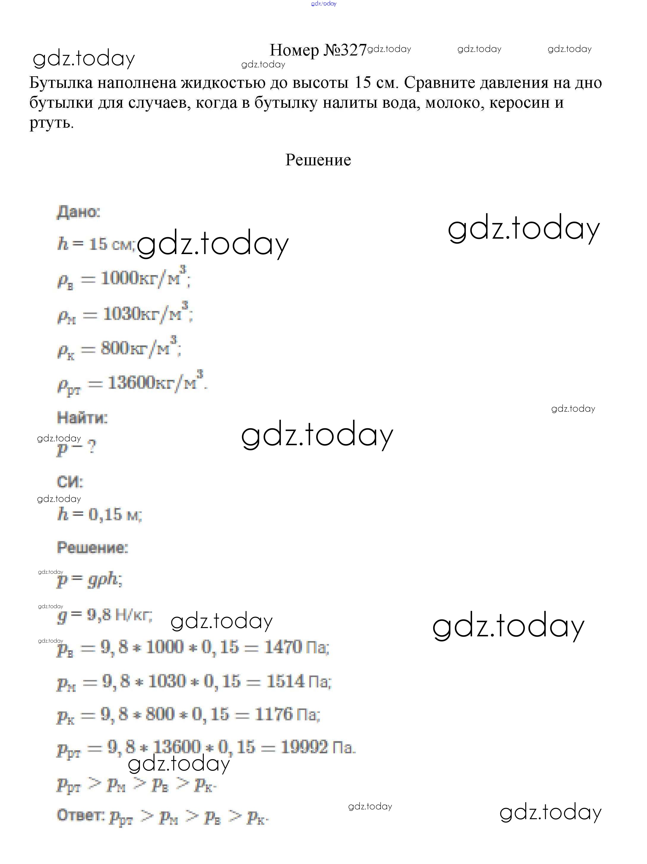На страницах сайта gdz.today вы найдете учебный и вспомогательный материал, направленный на улучшения знаний школьной программы. ГДЗ - онлайн мир знаний Решение к заданиям 7 класс 327 Сборнику вопросов и задач по Физике для 7-9 класса Марон, Позойский Дрофа Вертикаль 2013