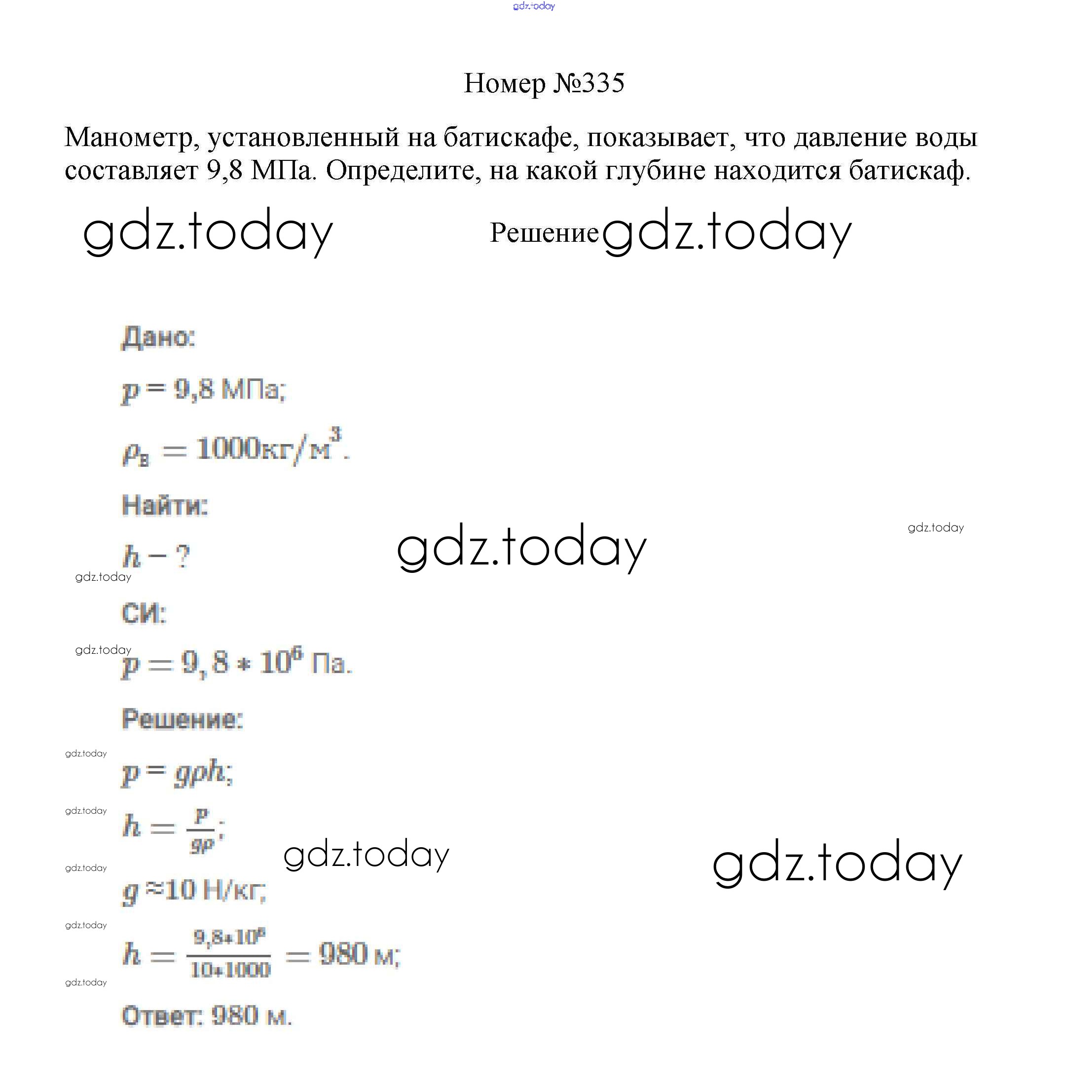 На страницах сайта gdz.today вы найдете учебный и вспомогательный материал, направленный на улучшения знаний школьной программы. ГДЗ - онлайн мир знаний Решение к заданиям 7 класс 335 Сборнику вопросов и задач по Физике для 7-9 класса Марон, Позойский Дрофа Вертикаль 2013