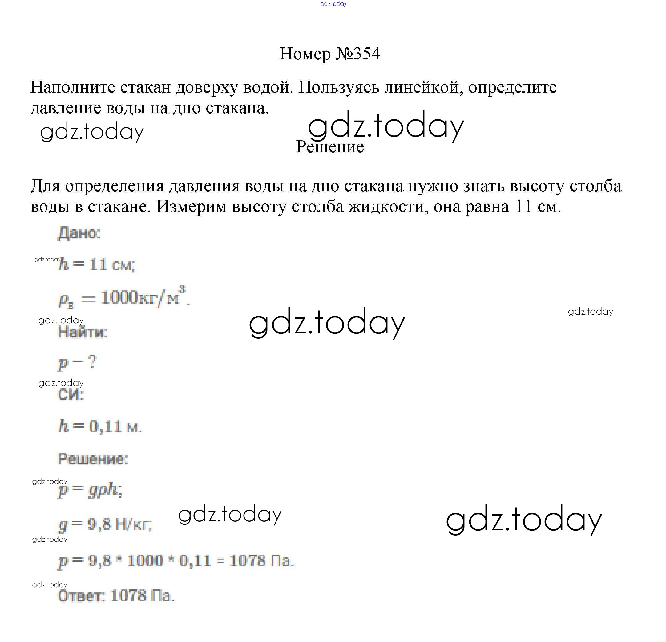 На страницах сайта gdz.today вы найдете учебный и вспомогательный материал, направленный на улучшения знаний школьной программы. ГДЗ - онлайн мир знаний Решение к заданиям 7 класс 354 Сборнику вопросов и задач по Физике для 7-9 класса Марон, Позойский Дрофа Вертикаль 2013