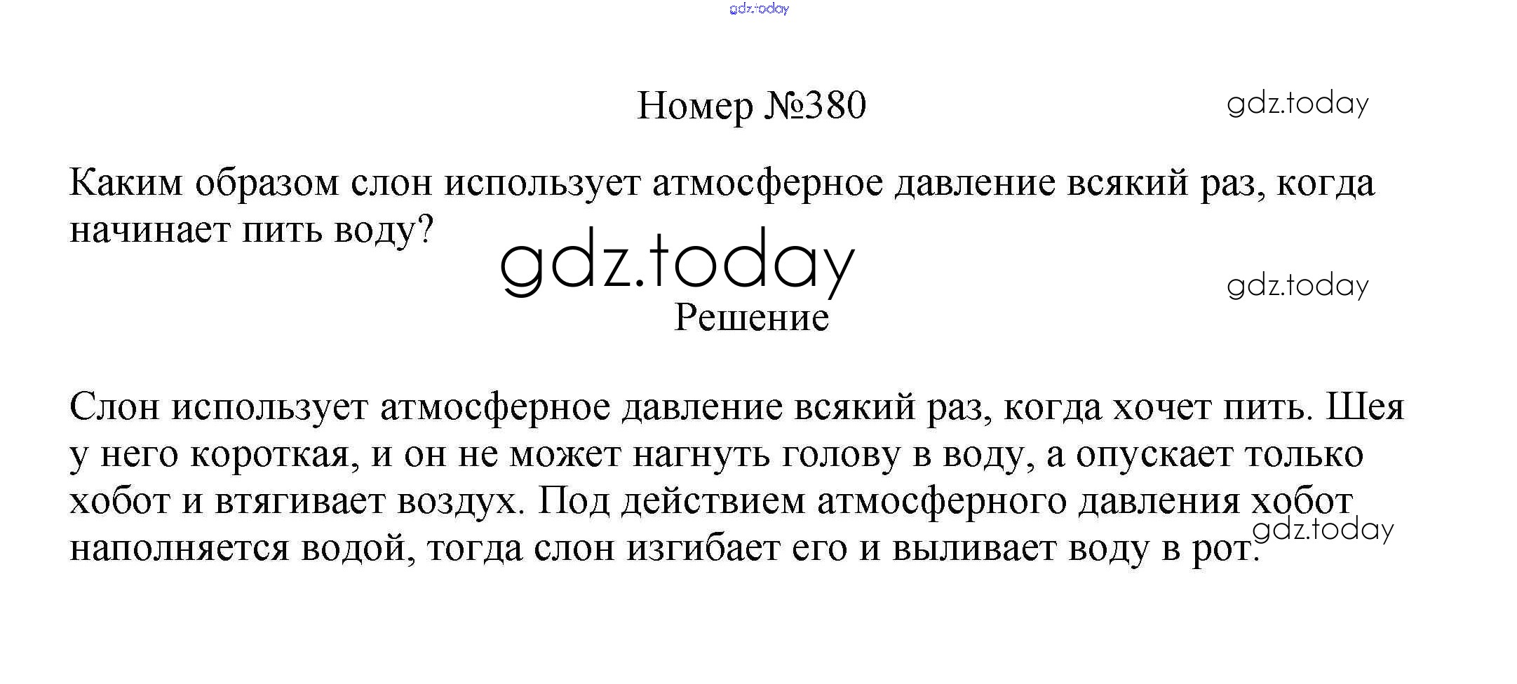 На страницах сайта gdz.today вы найдете учебный и вспомогательный материал, направленный на улучшения знаний школьной программы. ГДЗ - онлайн мир знаний Решение к заданиям 7 класс 380 Сборнику вопросов и задач по Физике для 7-9 класса Марон, Позойский Дрофа Вертикаль 2013