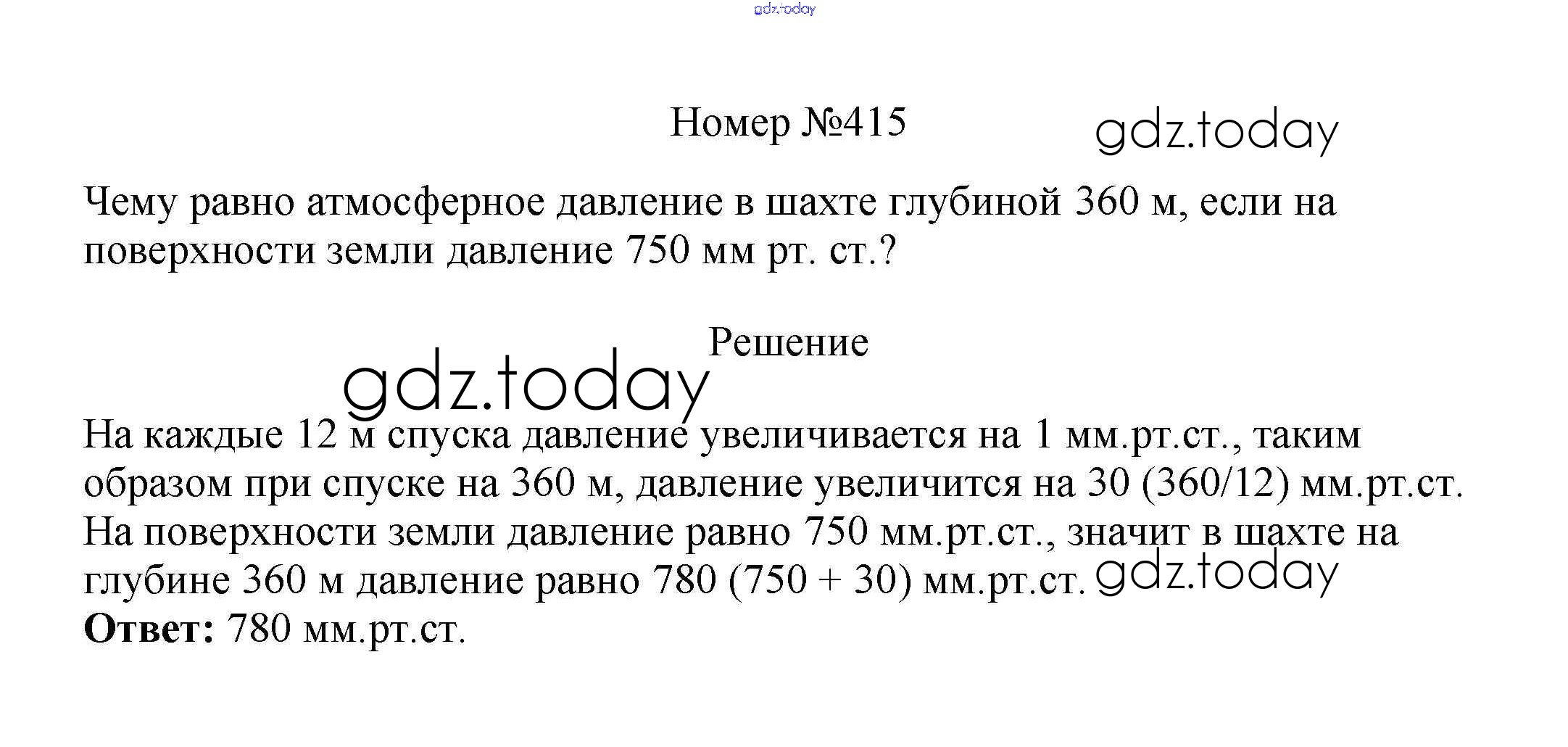 На страницах сайта gdz.today вы найдете учебный и вспомогательный материал, направленный на улучшения знаний школьной программы. ГДЗ - онлайн мир знаний Решение к заданиям 7 класс 415 Сборнику вопросов и задач по Физике для 7-9 класса Марон, Позойский Дрофа Вертикаль 2013