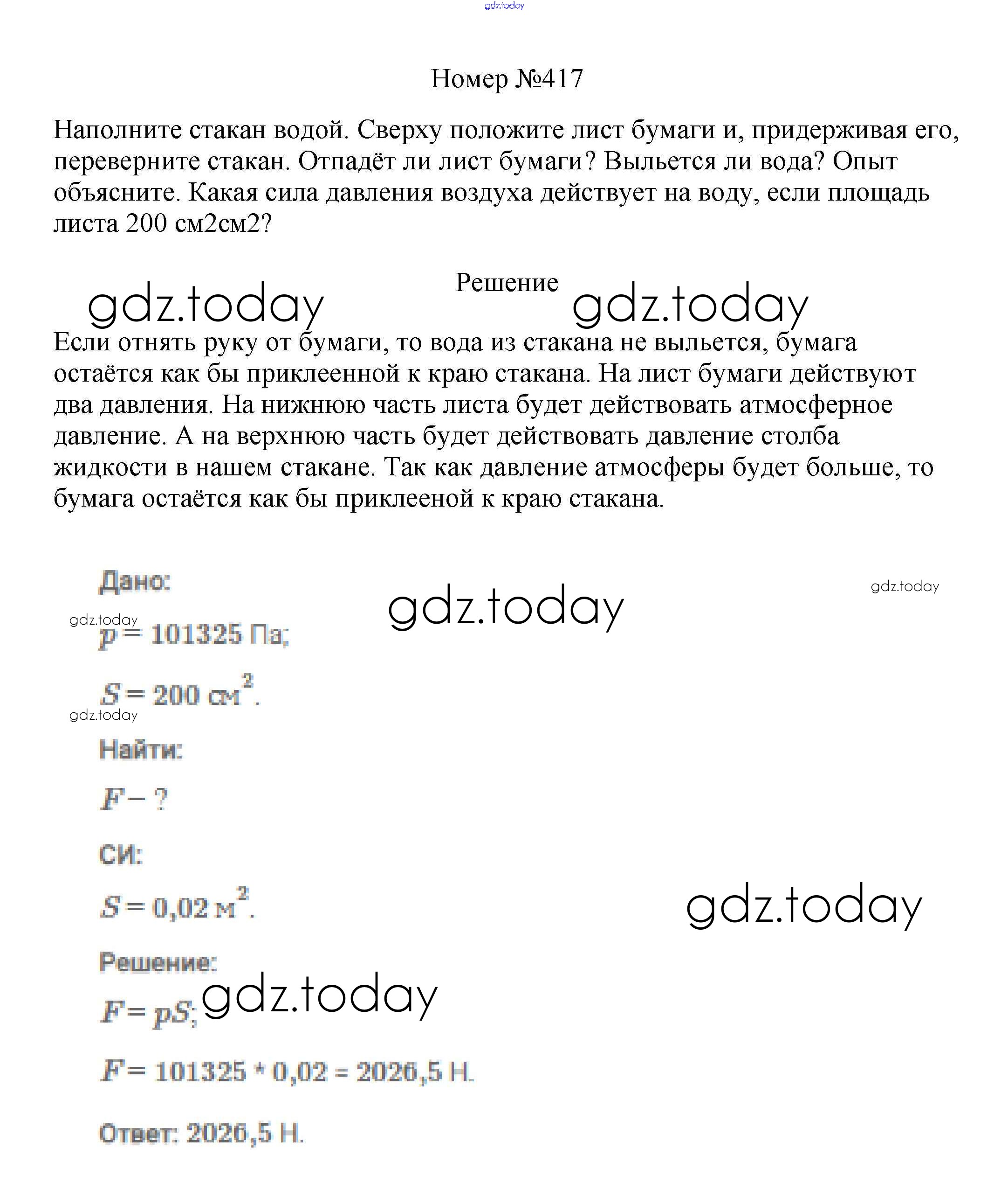 На страницах сайта gdz.today вы найдете учебный и вспомогательный материал, направленный на улучшения знаний школьной программы. ГДЗ - онлайн мир знаний Решение к заданиям 7 класс 417 Сборнику вопросов и задач по Физике для 7-9 класса Марон, Позойский Дрофа Вертикаль 2013