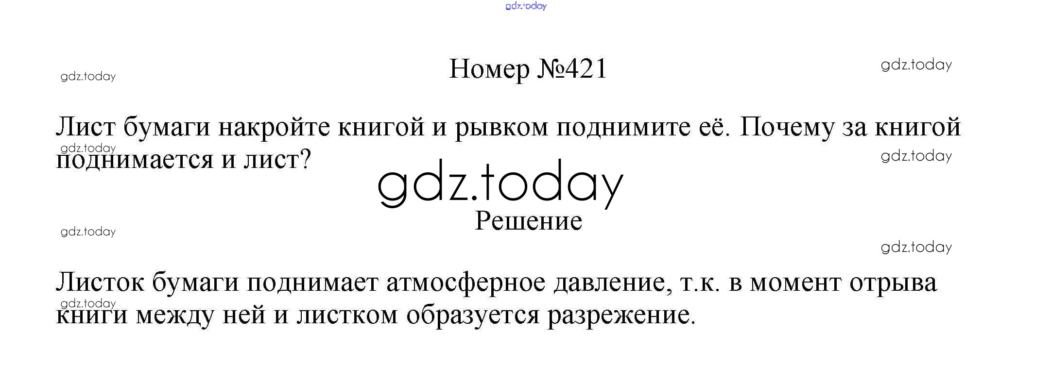 На страницах сайта gdz.today вы найдете учебный и вспомогательный материал, направленный на улучшения знаний школьной программы. ГДЗ - онлайн мир знаний Решение к заданиям 7 класс 421 Сборнику вопросов и задач по Физике для 7-9 класса Марон, Позойский Дрофа Вертикаль 2013