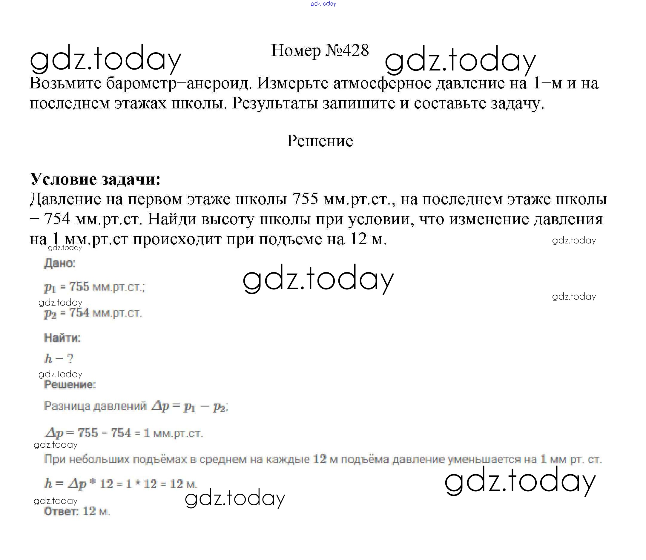 На страницах сайта gdz.today вы найдете учебный и вспомогательный материал, направленный на улучшения знаний школьной программы. ГДЗ - онлайн мир знаний Решение к заданиям 7 класс 428 Сборнику вопросов и задач по Физике для 7-9 класса Марон, Позойский Дрофа Вертикаль 2013
