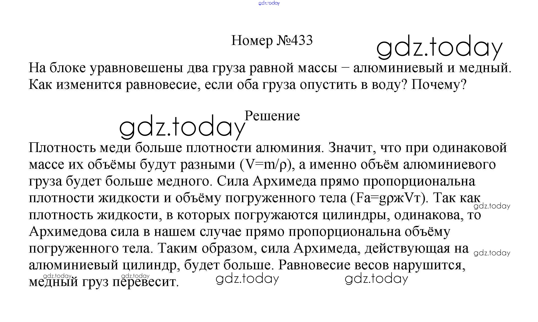 На страницах сайта gdz.today вы найдете учебный и вспомогательный материал, направленный на улучшения знаний школьной программы. ГДЗ - онлайн мир знаний Решение к заданиям 7 класс 433 Сборнику вопросов и задач по Физике для 7-9 класса Марон, Позойский Дрофа Вертикаль 2013