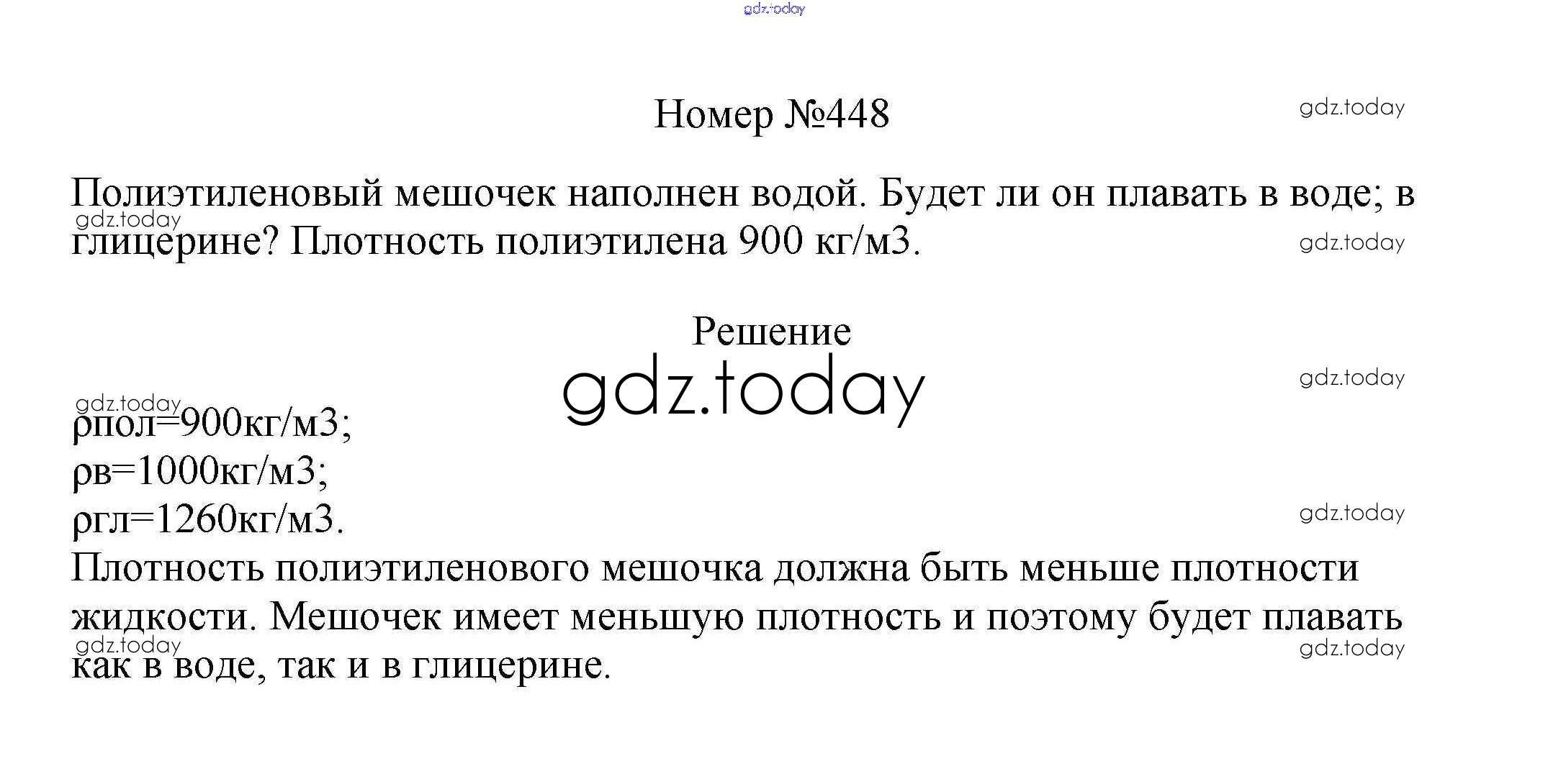 На страницах сайта gdz.today вы найдете учебный и вспомогательный материал, направленный на улучшения знаний школьной программы. ГДЗ - онлайн мир знаний Решение к заданиям 7 класс 448 Сборнику вопросов и задач по Физике для 7-9 класса Марон, Позойский Дрофа Вертикаль 2013