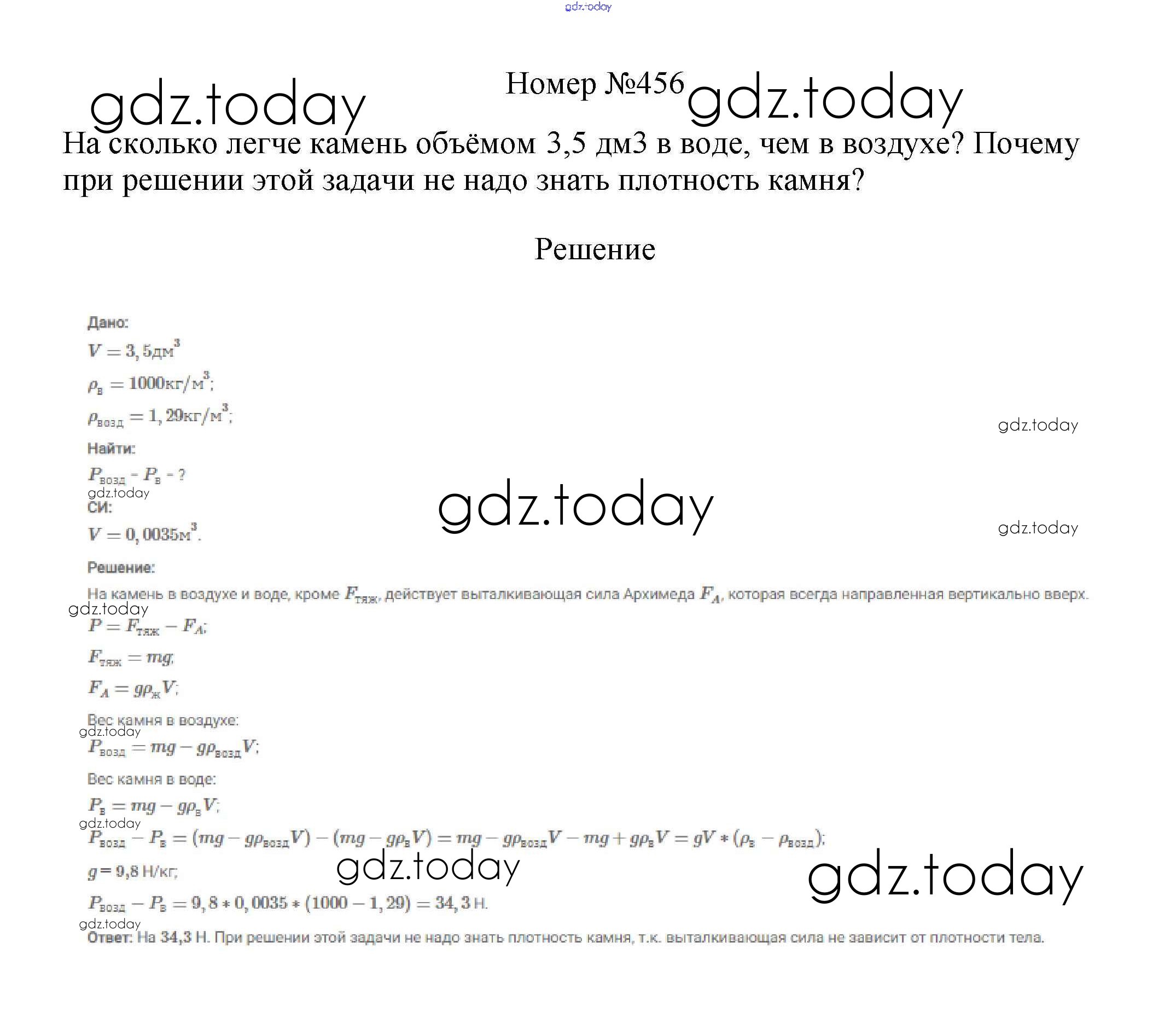На страницах сайта gdz.today вы найдете учебный и вспомогательный материал, направленный на улучшения знаний школьной программы. ГДЗ - онлайн мир знаний Решение к заданиям 7 класс 456 Сборнику вопросов и задач по Физике для 7-9 класса Марон, Позойский Дрофа Вертикаль 2013