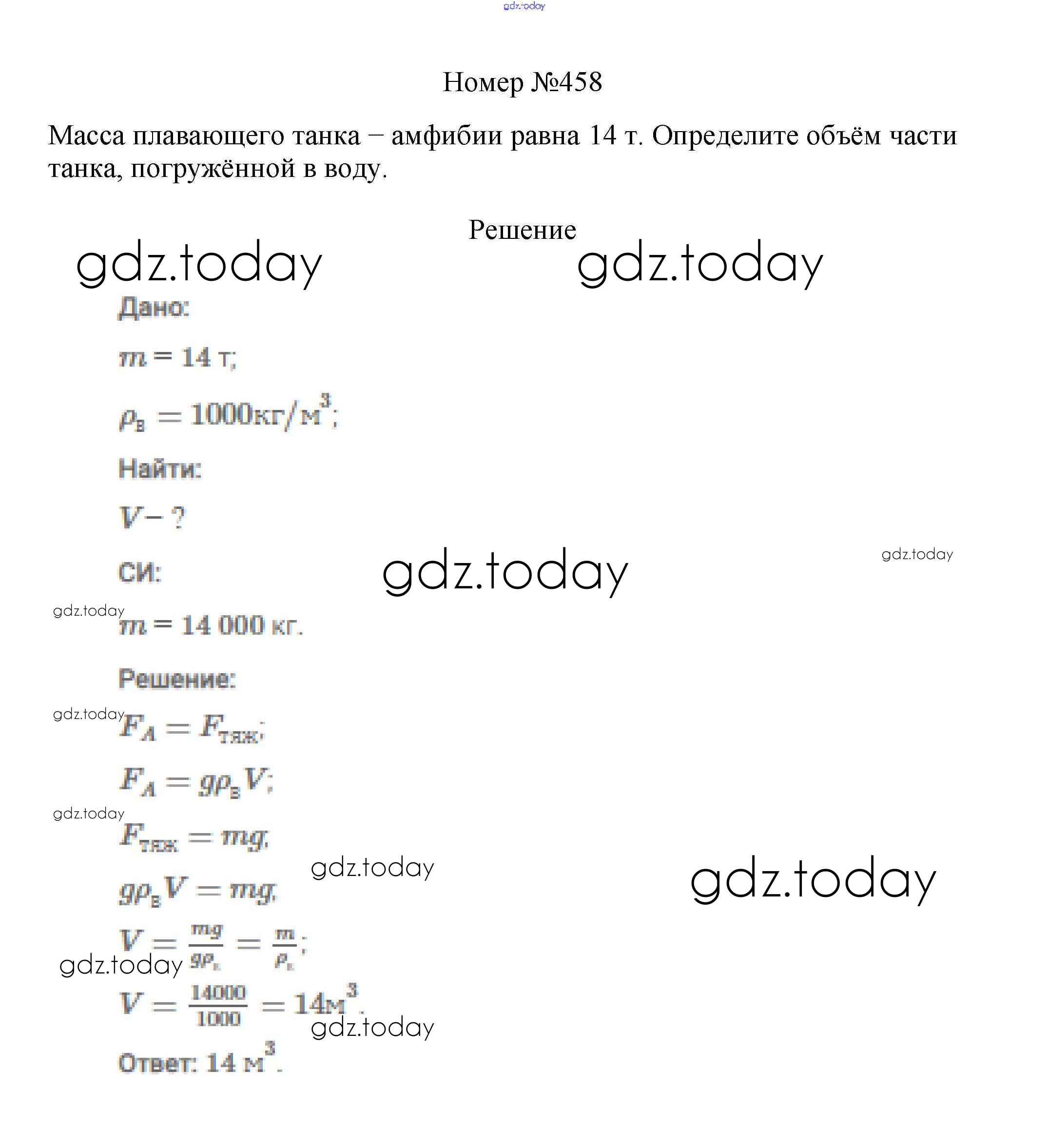 На страницах сайта gdz.today вы найдете учебный и вспомогательный материал, направленный на улучшения знаний школьной программы. ГДЗ - онлайн мир знаний Решение к заданиям 7 класс 458 Сборнику вопросов и задач по Физике для 7-9 класса Марон, Позойский Дрофа Вертикаль 2013