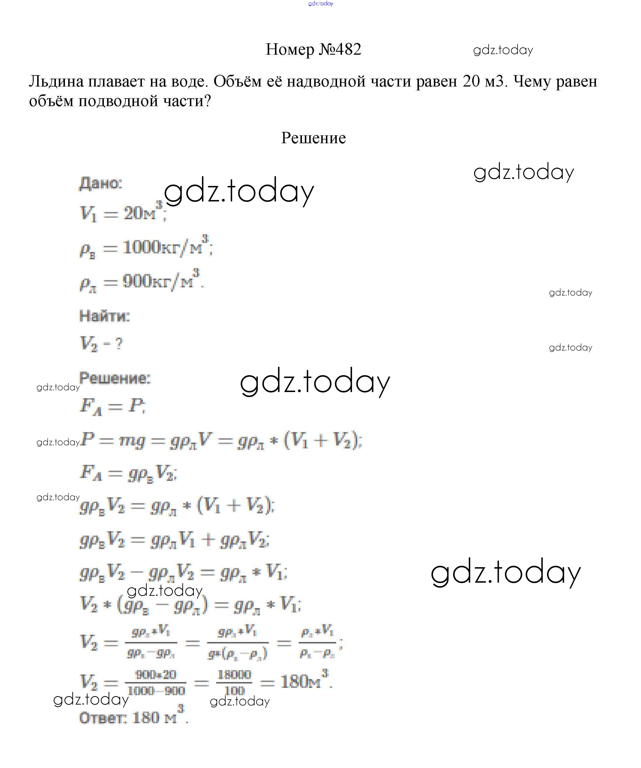 На страницах сайта gdz.today вы найдете учебный и вспомогательный материал, направленный на улучшения знаний школьной программы. ГДЗ - онлайн мир знаний Решение к заданиям 7 класс 482 Сборнику вопросов и задач по Физике для 7-9 класса Марон, Позойский Дрофа Вертикаль 2013