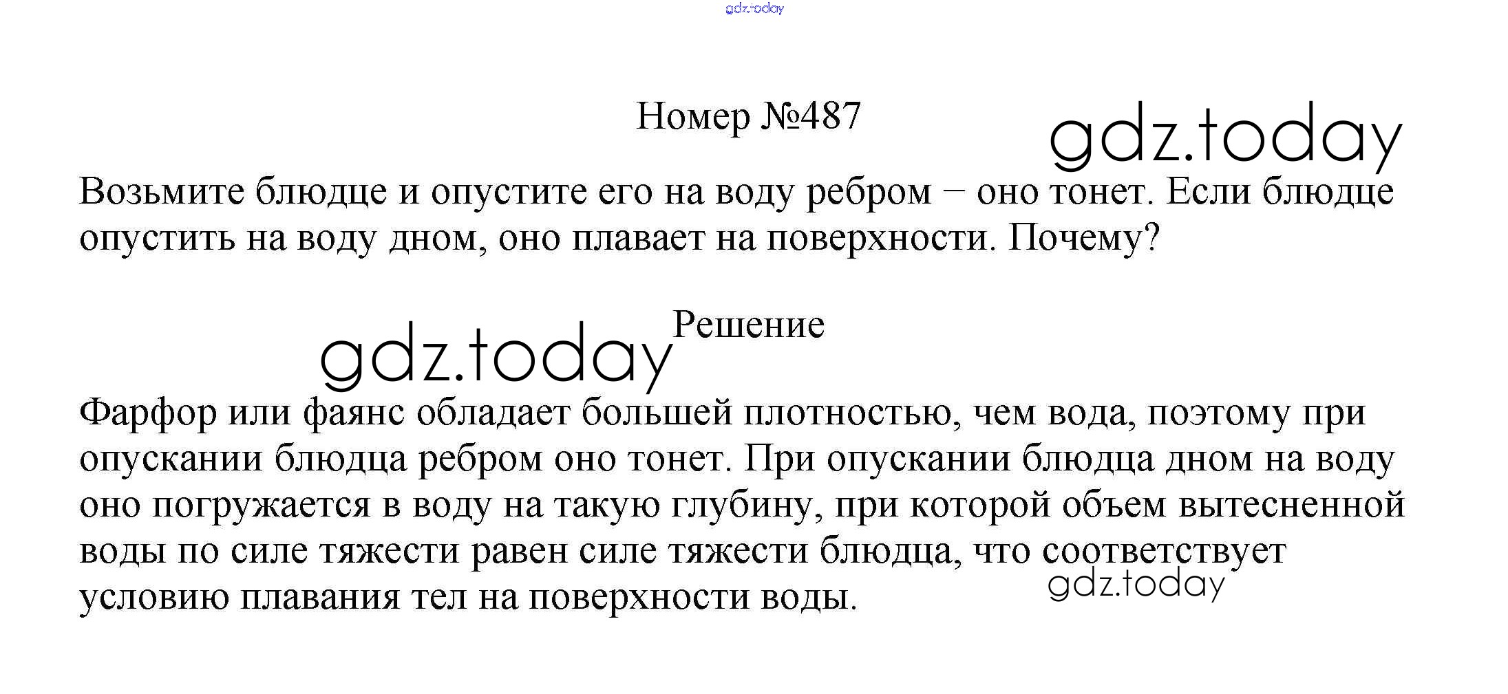На страницах сайта gdz.today вы найдете учебный и вспомогательный материал, направленный на улучшения знаний школьной программы. ГДЗ - онлайн мир знаний Решение к заданиям 7 класс 487 Сборнику вопросов и задач по Физике для 7-9 класса Марон, Позойский Дрофа Вертикаль 2013