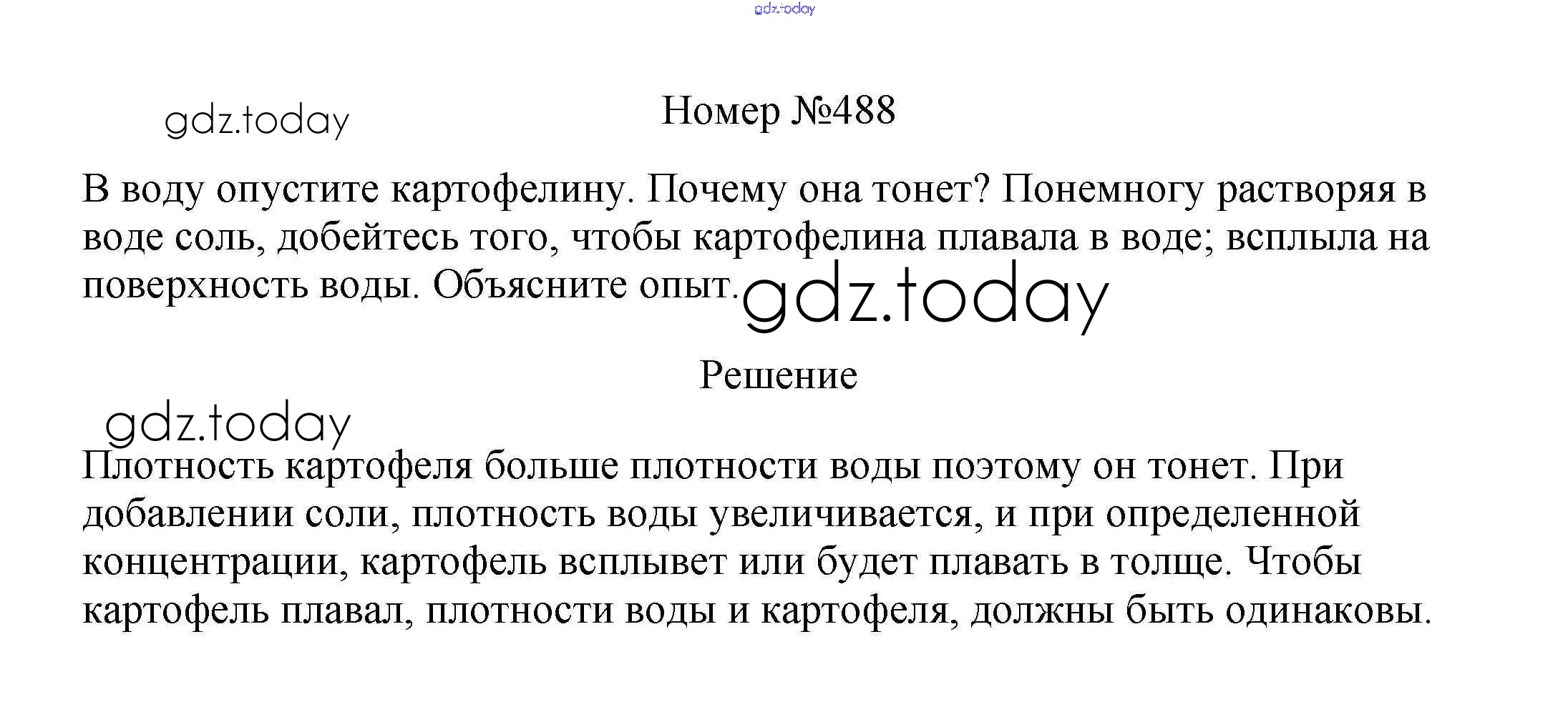На страницах сайта gdz.today вы найдете учебный и вспомогательный материал, направленный на улучшения знаний школьной программы. ГДЗ - онлайн мир знаний Решение к заданиям 7 класс 488 Сборнику вопросов и задач по Физике для 7-9 класса Марон, Позойский Дрофа Вертикаль 2013