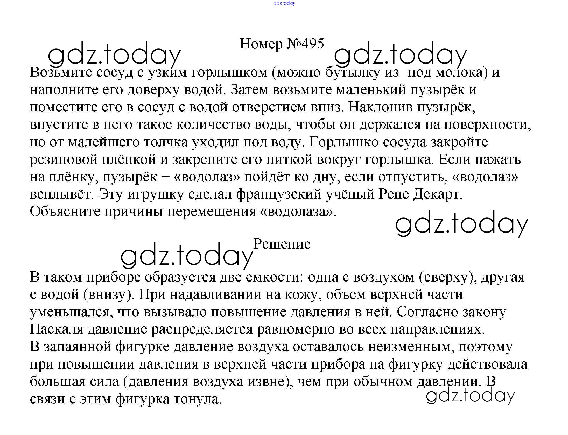 На страницах сайта gdz.today вы найдете учебный и вспомогательный материал, направленный на улучшения знаний школьной программы. ГДЗ - онлайн мир знаний Решение к заданиям 7 класс 495 Сборнику вопросов и задач по Физике для 7-9 класса Марон, Позойский Дрофа Вертикаль 2013