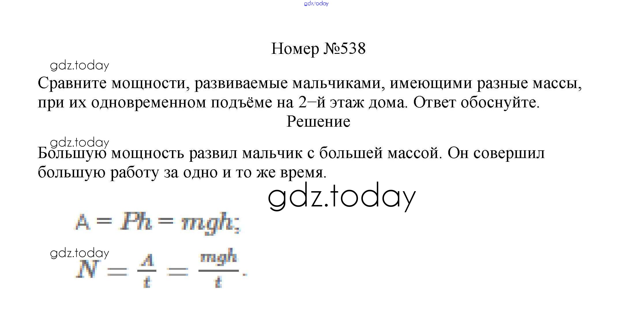 На страницах сайта gdz.today вы найдете учебный и вспомогательный материал, направленный на улучшения знаний школьной программы. ГДЗ - онлайн мир знаний Решение к заданиям 7 класс 538 Сборнику вопросов и задач по Физике для 7-9 класса Марон, Позойский Дрофа Вертикаль 2013