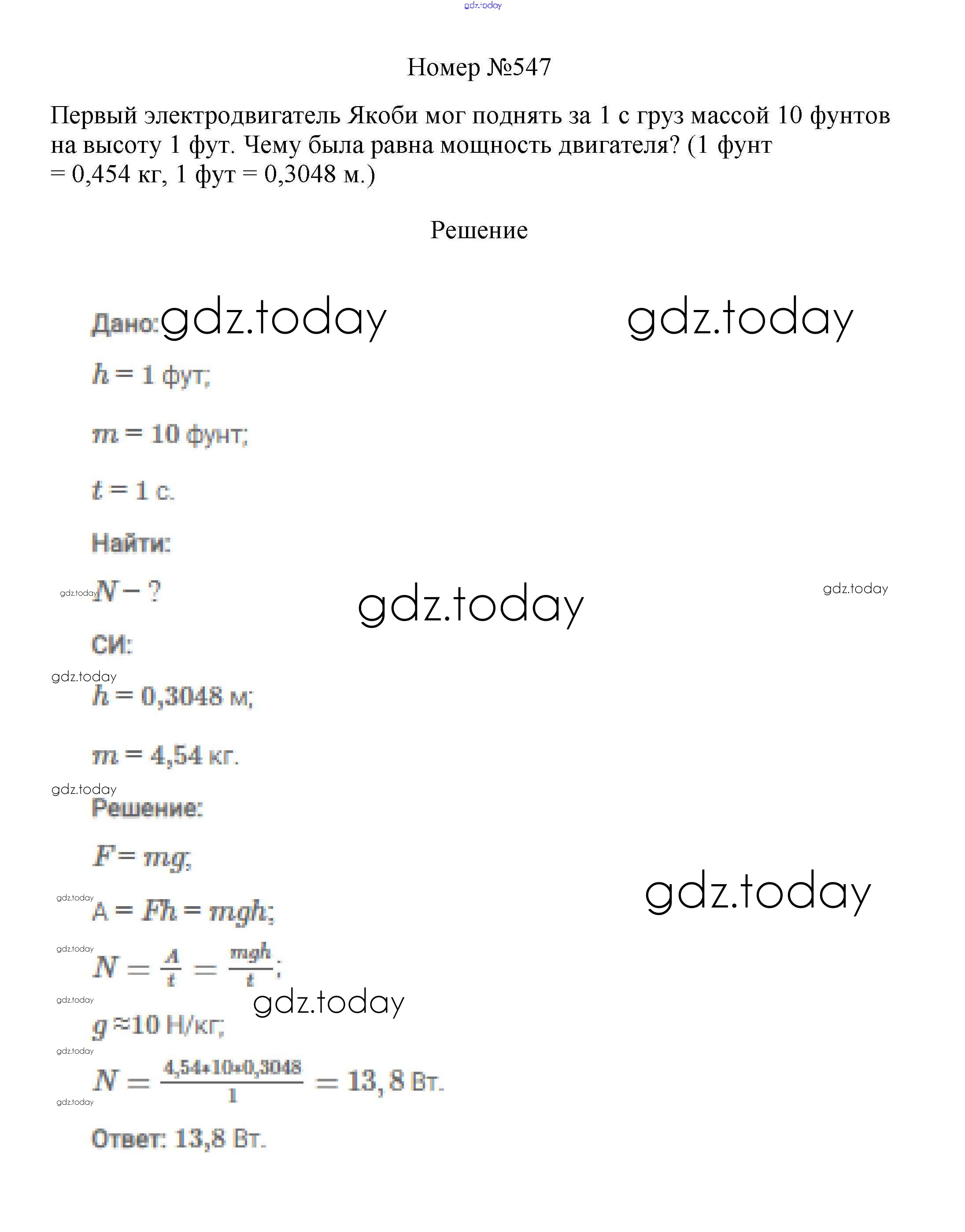 На страницах сайта gdz.today вы найдете учебный и вспомогательный материал, направленный на улучшения знаний школьной программы. ГДЗ - онлайн мир знаний Решение к заданиям 7 класс 547 Сборнику вопросов и задач по Физике для 7-9 класса Марон, Позойский Дрофа Вертикаль 2013