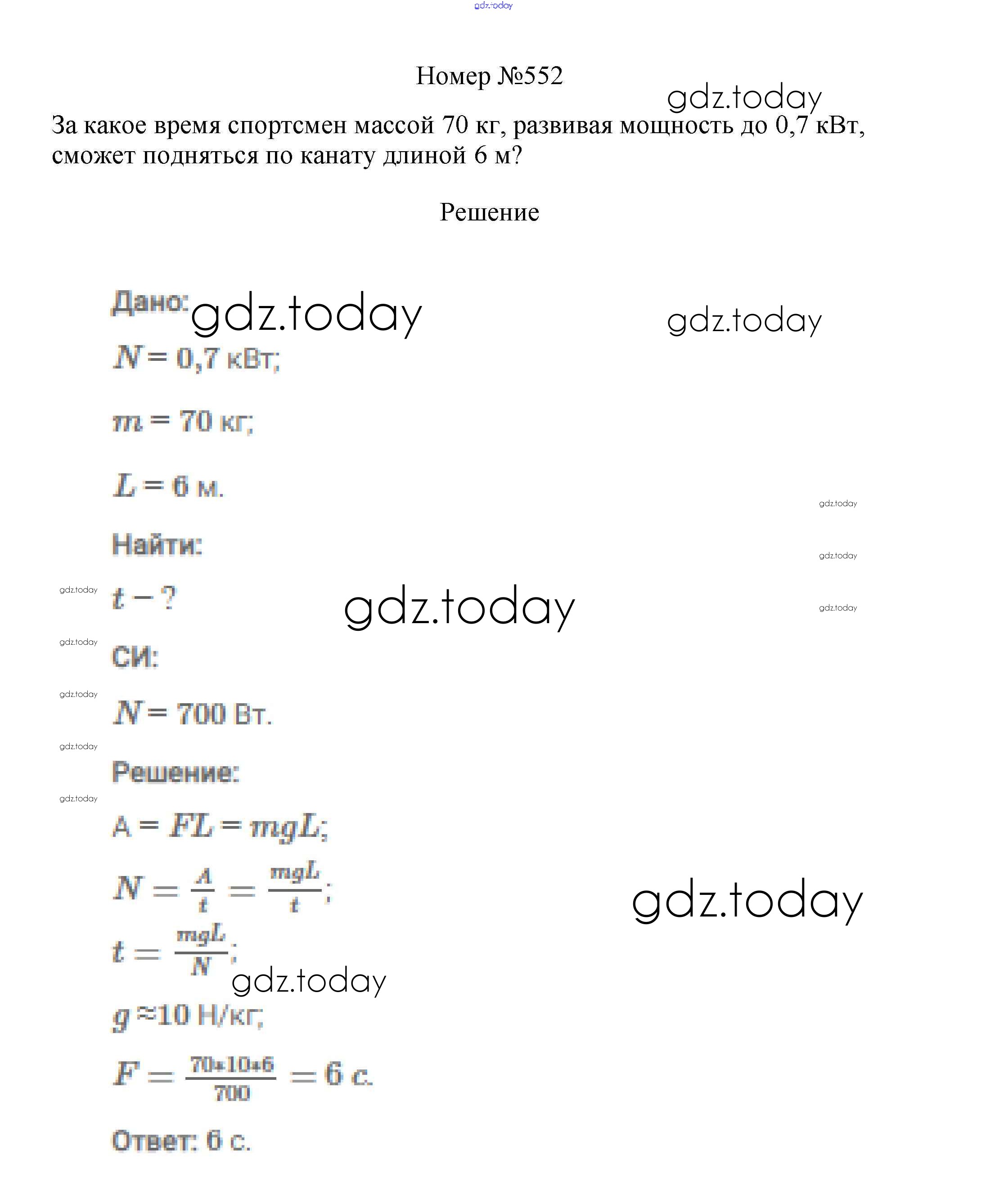 На страницах сайта gdz.today вы найдете учебный и вспомогательный материал, направленный на улучшения знаний школьной программы. ГДЗ - онлайн мир знаний Решение к заданиям 7 класс 552 Сборнику вопросов и задач по Физике для 7-9 класса Марон, Позойский Дрофа Вертикаль 2013