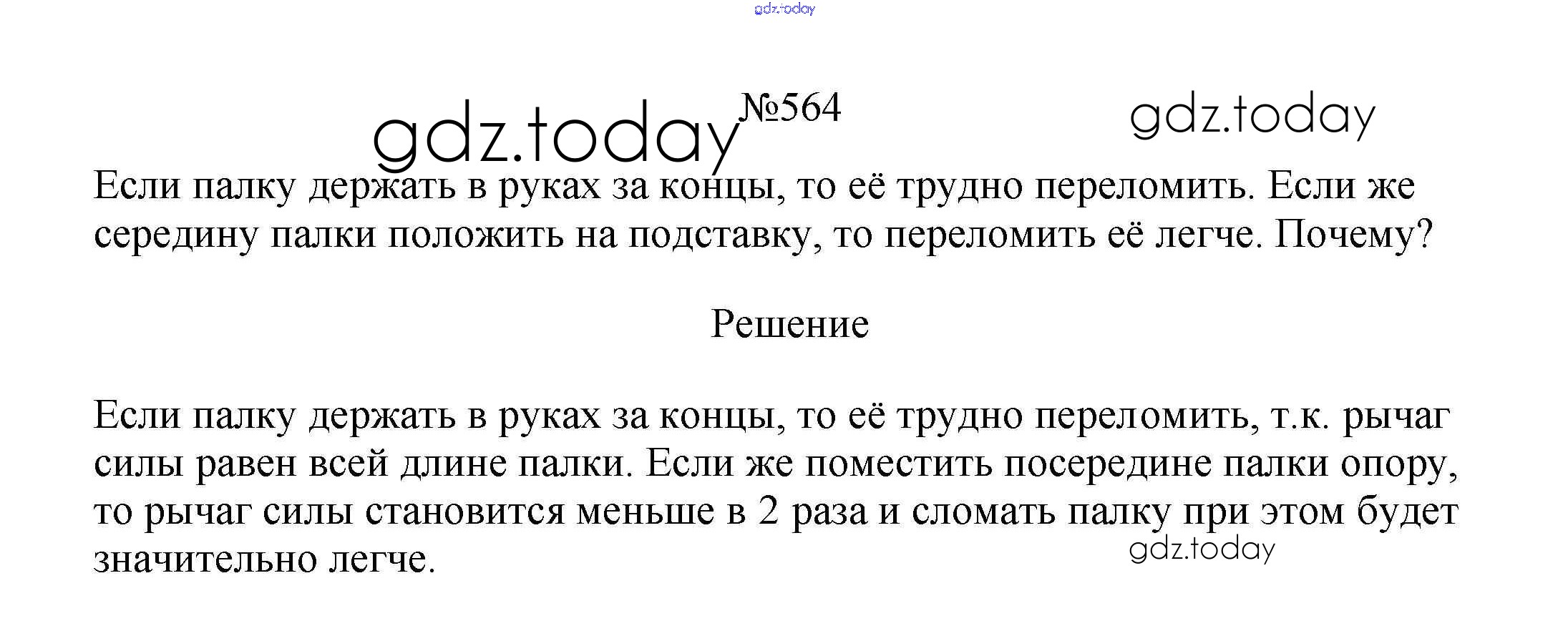 На страницах сайта gdz.today вы найдете учебный и вспомогательный материал, направленный на улучшения знаний школьной программы. ГДЗ - онлайн мир знаний Решение к заданиям 7 класс 564 Сборнику вопросов и задач по Физике для 7-9 класса Марон, Позойский Дрофа Вертикаль 2013