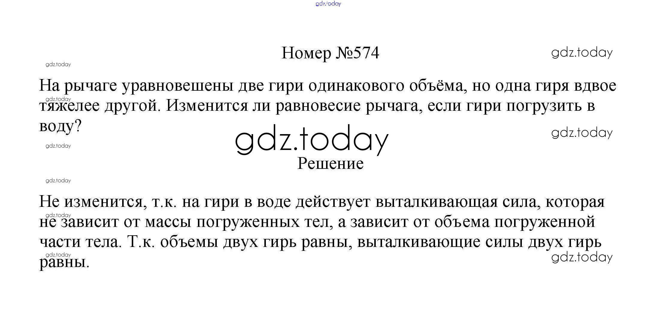 На страницах сайта gdz.today вы найдете учебный и вспомогательный материал, направленный на улучшения знаний школьной программы. ГДЗ - онлайн мир знаний Решение к заданиям 7 класс 574 Сборнику вопросов и задач по Физике для 7-9 класса Марон, Позойский Дрофа Вертикаль 2013