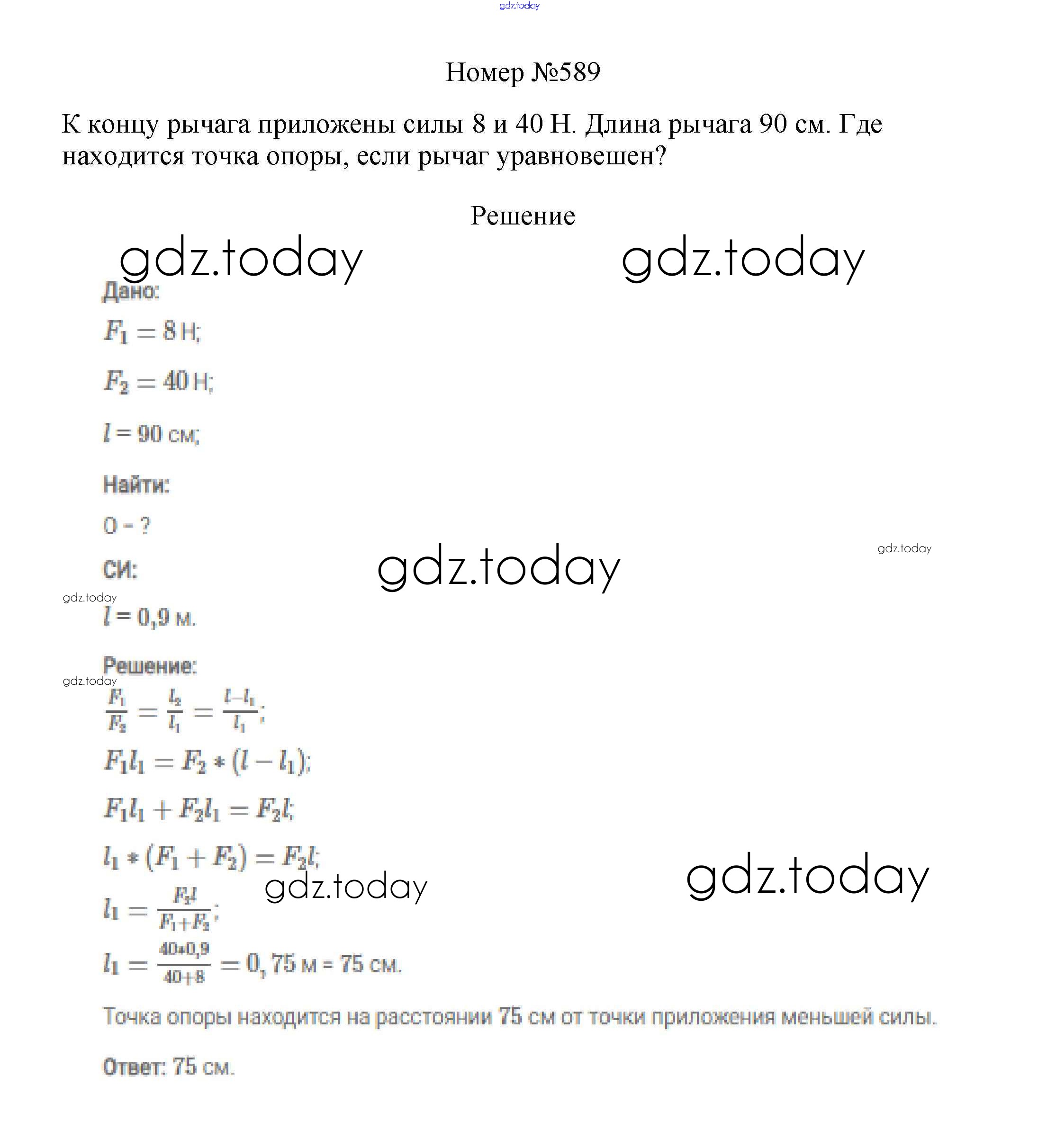 На страницах сайта gdz.today вы найдете учебный и вспомогательный материал, направленный на улучшения знаний школьной программы. ГДЗ - онлайн мир знаний Решение к заданиям 7 класс 589 Сборнику вопросов и задач по Физике для 7-9 класса Марон, Позойский Дрофа Вертикаль 2013