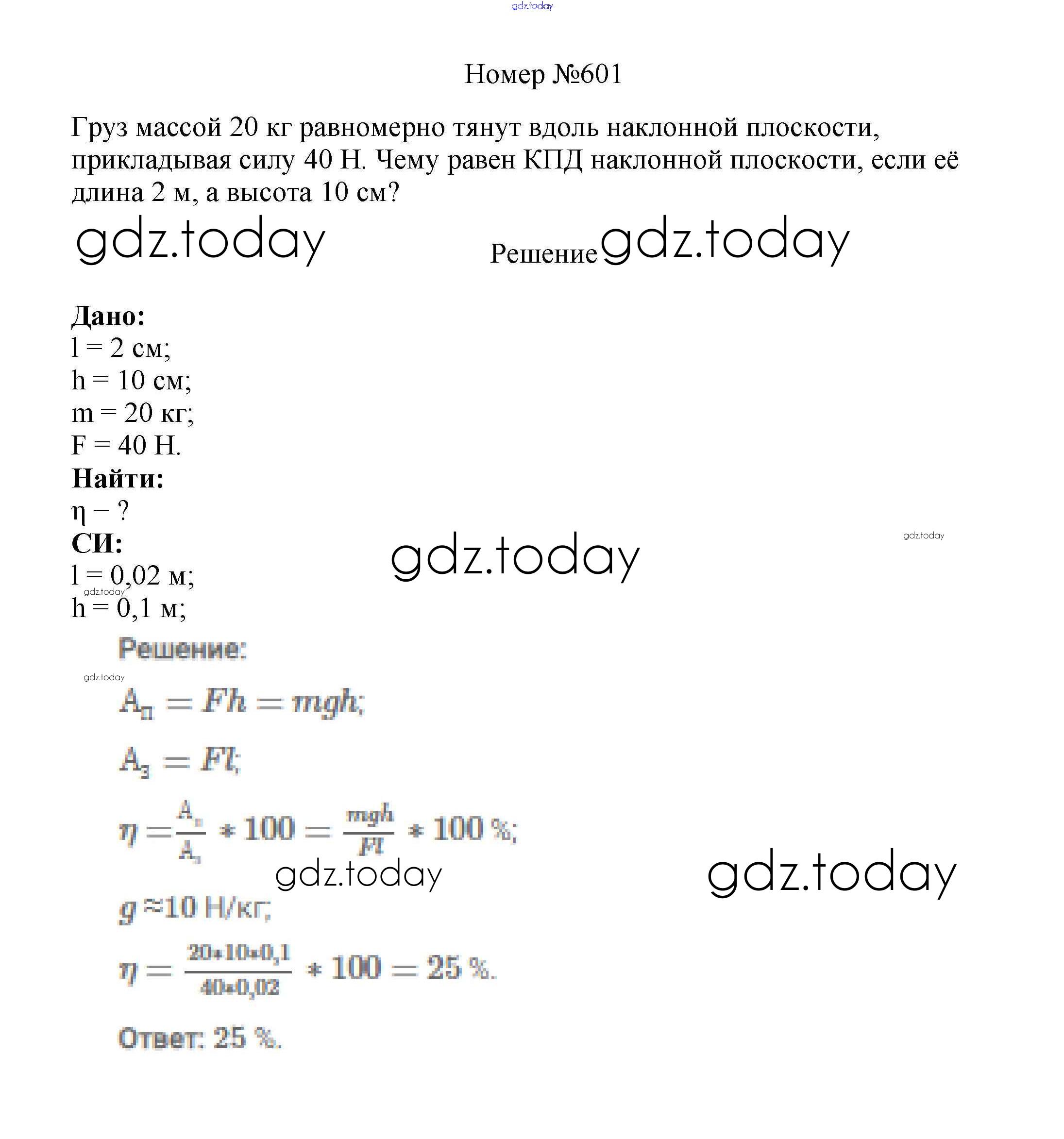На страницах сайта gdz.today вы найдете учебный и вспомогательный материал, направленный на улучшения знаний школьной программы. ГДЗ - онлайн мир знаний Решение к заданиям 7 класс 601 Сборнику вопросов и задач по Физике для 7-9 класса Марон, Позойский Дрофа Вертикаль 2013