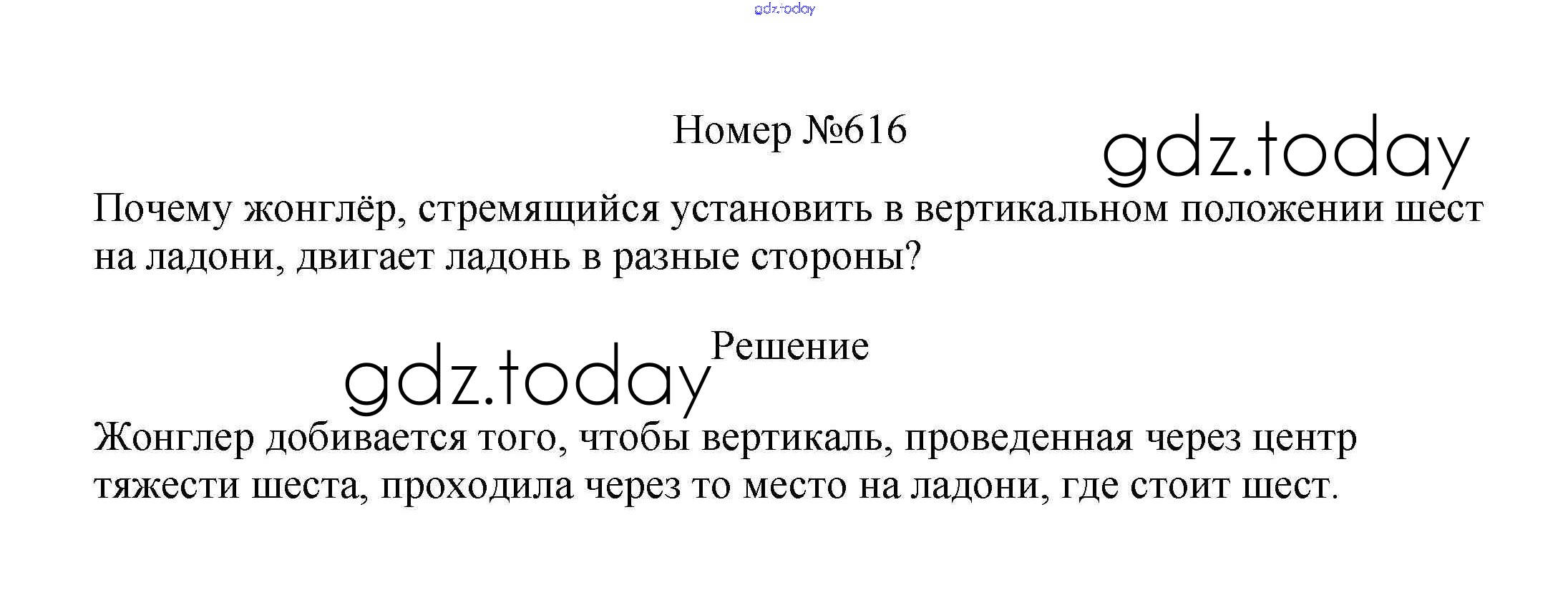 На страницах сайта gdz.today вы найдете учебный и вспомогательный материал, направленный на улучшения знаний школьной программы. ГДЗ - онлайн мир знаний Решение к заданиям 7 класс 616 Сборнику вопросов и задач по Физике для 7-9 класса Марон, Позойский Дрофа Вертикаль 2013