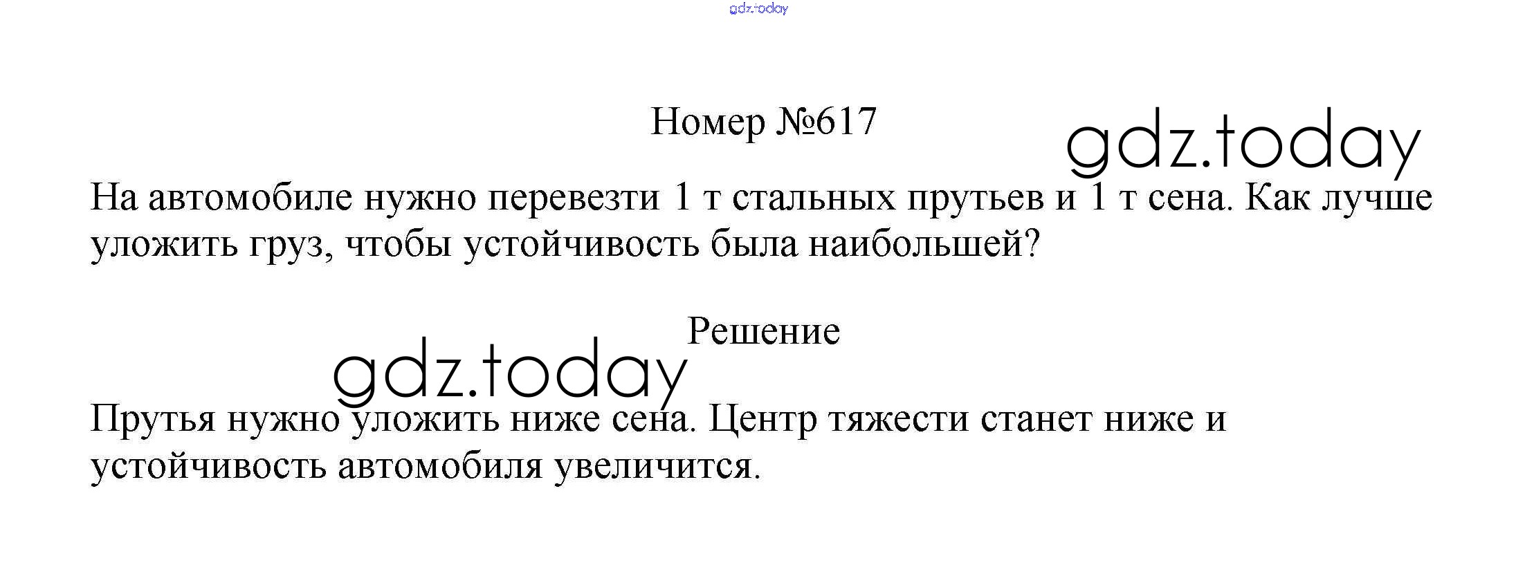На страницах сайта gdz.today вы найдете учебный и вспомогательный материал, направленный на улучшения знаний школьной программы. ГДЗ - онлайн мир знаний Решение к заданиям 7 класс 617 Сборнику вопросов и задач по Физике для 7-9 класса Марон, Позойский Дрофа Вертикаль 2013