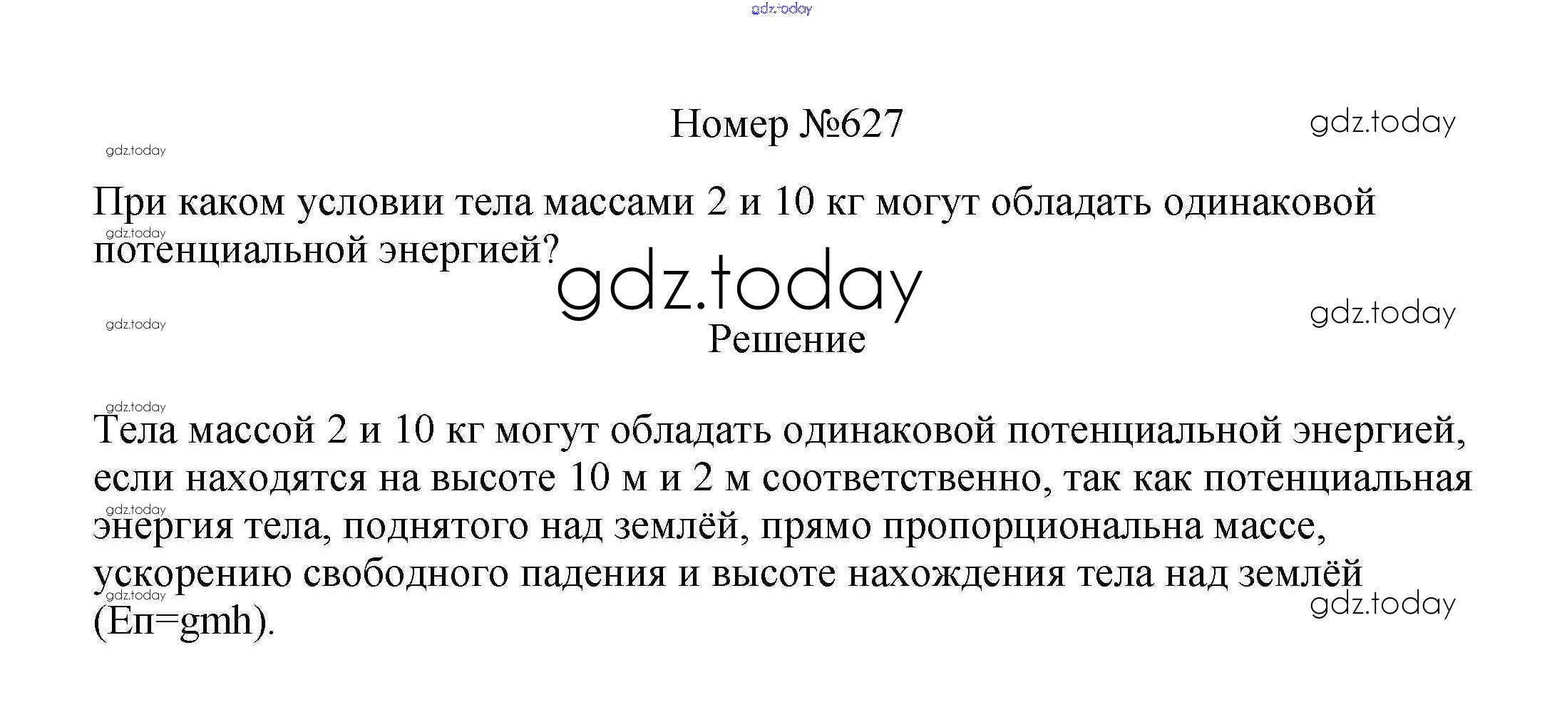 На страницах сайта gdz.today вы найдете учебный и вспомогательный материал, направленный на улучшения знаний школьной программы. ГДЗ - онлайн мир знаний Решение к заданиям 7 класс 627 Сборнику вопросов и задач по Физике для 7-9 класса Марон, Позойский Дрофа Вертикаль 2013