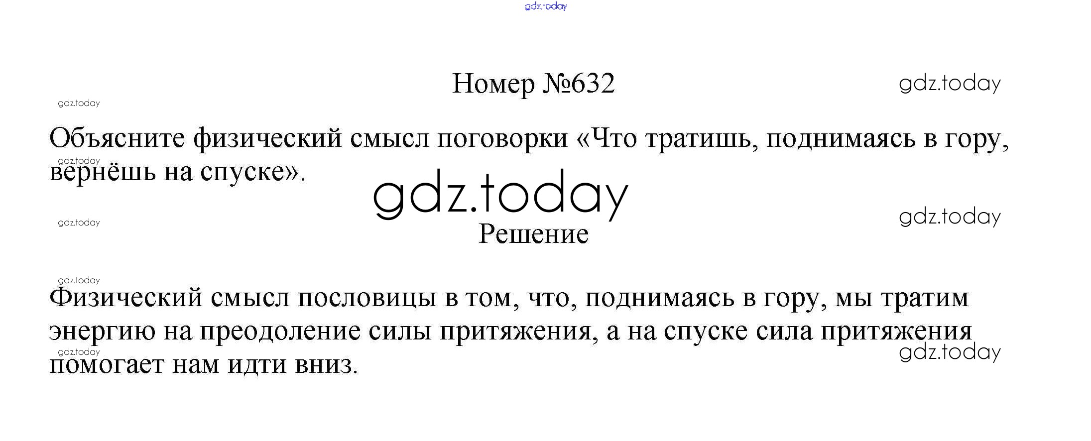 На страницах сайта gdz.today вы найдете учебный и вспомогательный материал, направленный на улучшения знаний школьной программы. ГДЗ - онлайн мир знаний Решение к заданиям 7 класс 632 Сборнику вопросов и задач по Физике для 7-9 класса Марон, Позойский Дрофа Вертикаль 2013