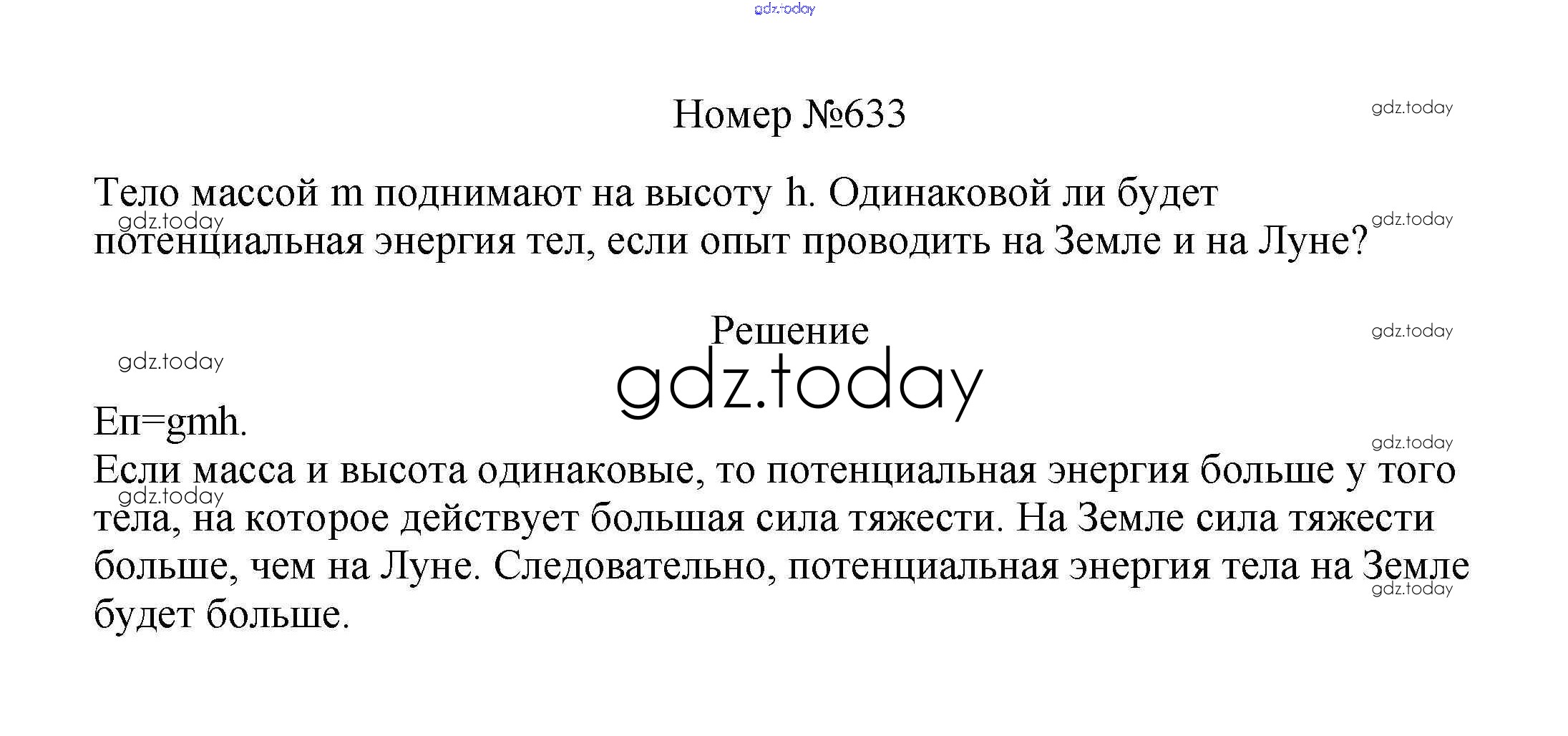 На страницах сайта gdz.today вы найдете учебный и вспомогательный материал, направленный на улучшения знаний школьной программы. ГДЗ - онлайн мир знаний Решение к заданиям 7 класс 633 Сборнику вопросов и задач по Физике для 7-9 класса Марон, Позойский Дрофа Вертикаль 2013