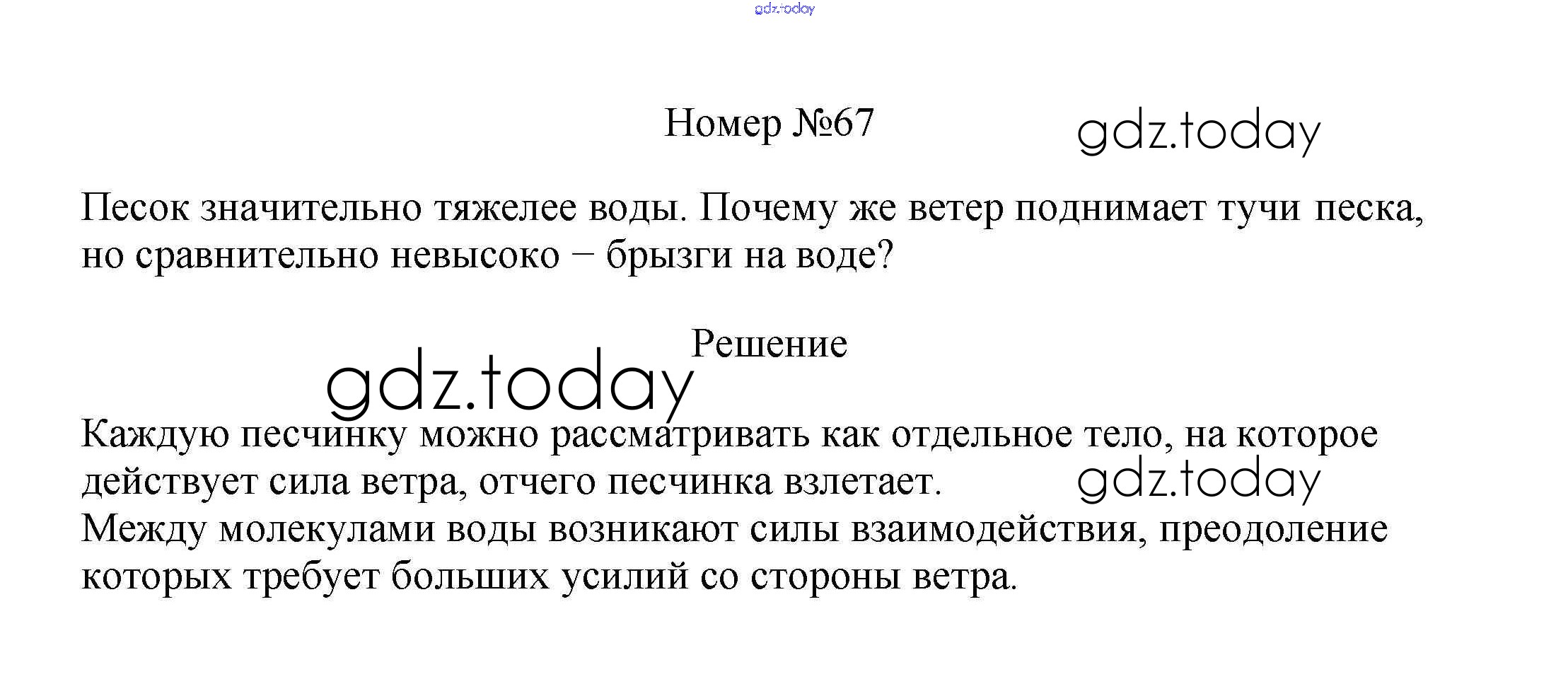 На страницах сайта gdz.today вы найдете учебный и вспомогательный материал, направленный на улучшения знаний школьной программы. ГДЗ - онлайн мир знаний Решение к заданиям 7 класс 67 Сборнику вопросов и задач по Физике для 7-9 класса Марон, Позойский Дрофа Вертикаль 2013