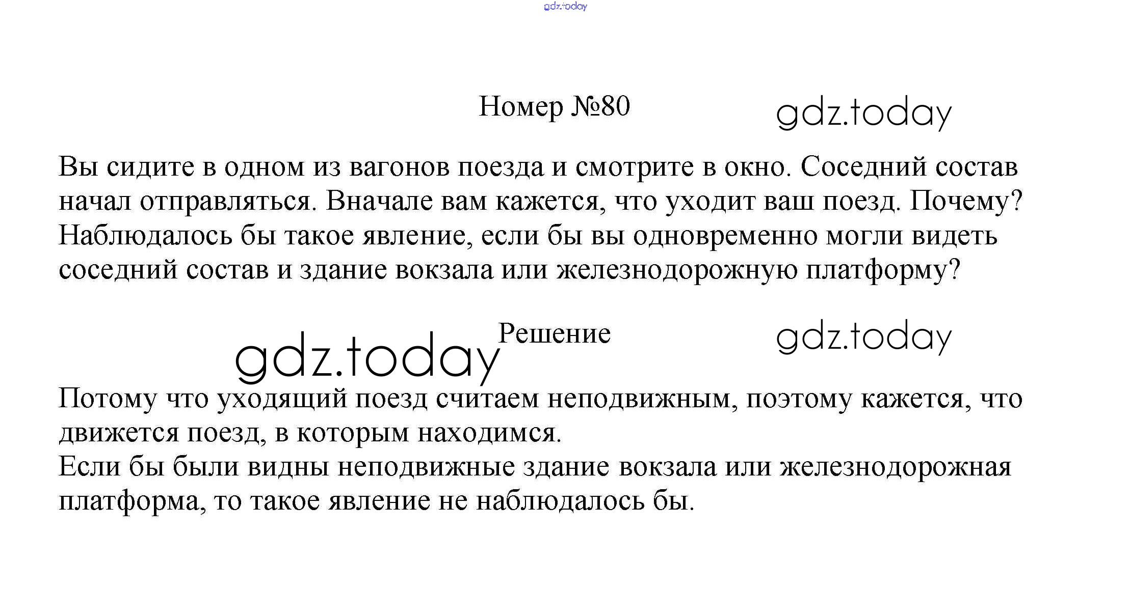 На страницах сайта gdz.today вы найдете учебный и вспомогательный материал, направленный на улучшения знаний школьной программы. ГДЗ - онлайн мир знаний Решение к заданиям 7 класс 80 Сборнику вопросов и задач по Физике для 7-9 класса Марон, Позойский Дрофа Вертикаль 2013