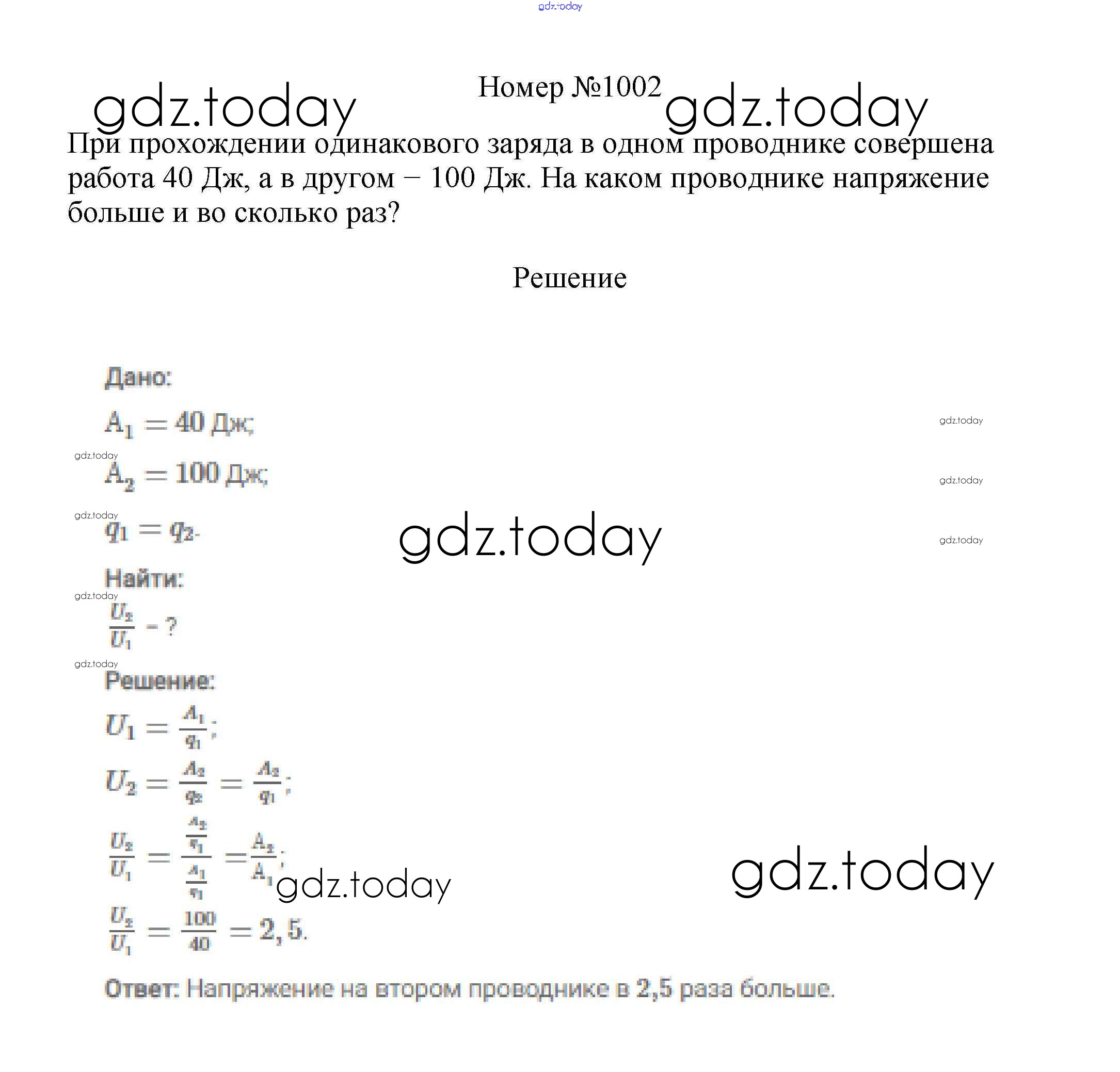 На страницах сайта gdz.today вы найдете учебный и вспомогательный материал, направленный на улучшения знаний школьной программы. ГДЗ - онлайн мир знаний Решение к заданиям 8 класс 1002 Сборнику вопросов и задач по Физике для 7-9 класса Марон, Позойский Дрофа Вертикаль 2013